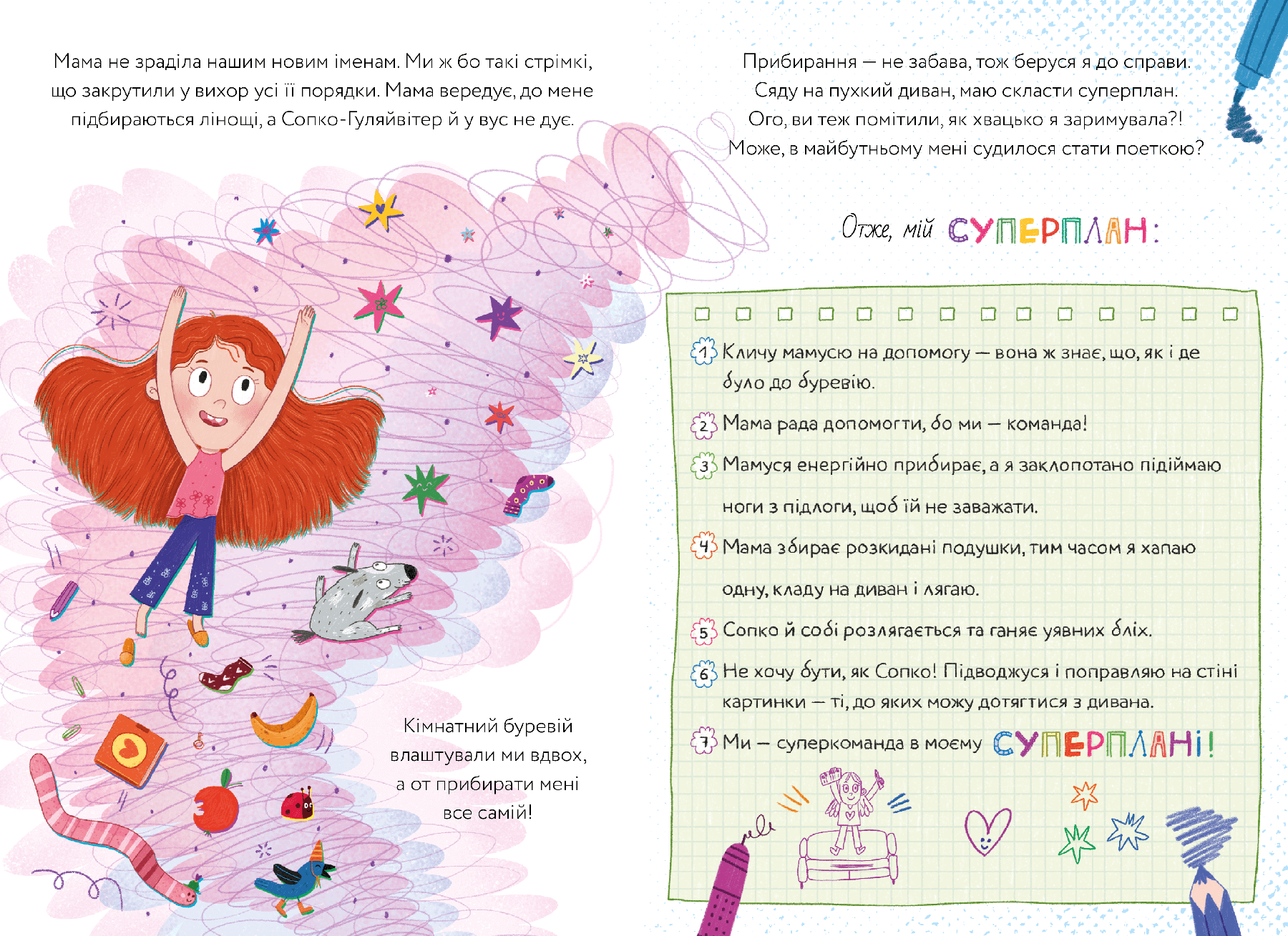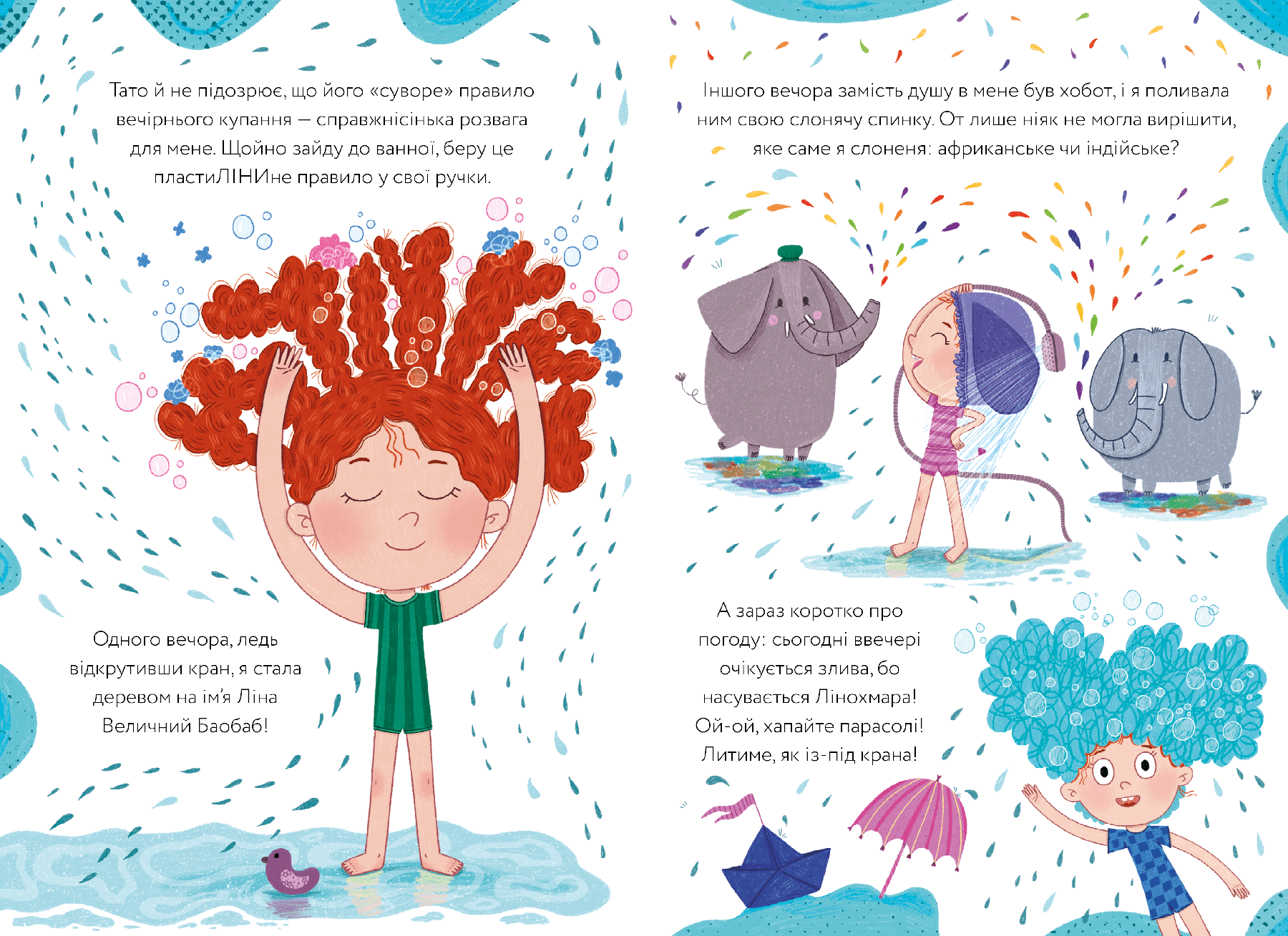 На яскравих сторінках цієї книжки Ліна тепло й дотепно розповідає про буденні сімейні ситуації, які з погляду дівчинки-вигадниці здаються неабиякими пригодами.