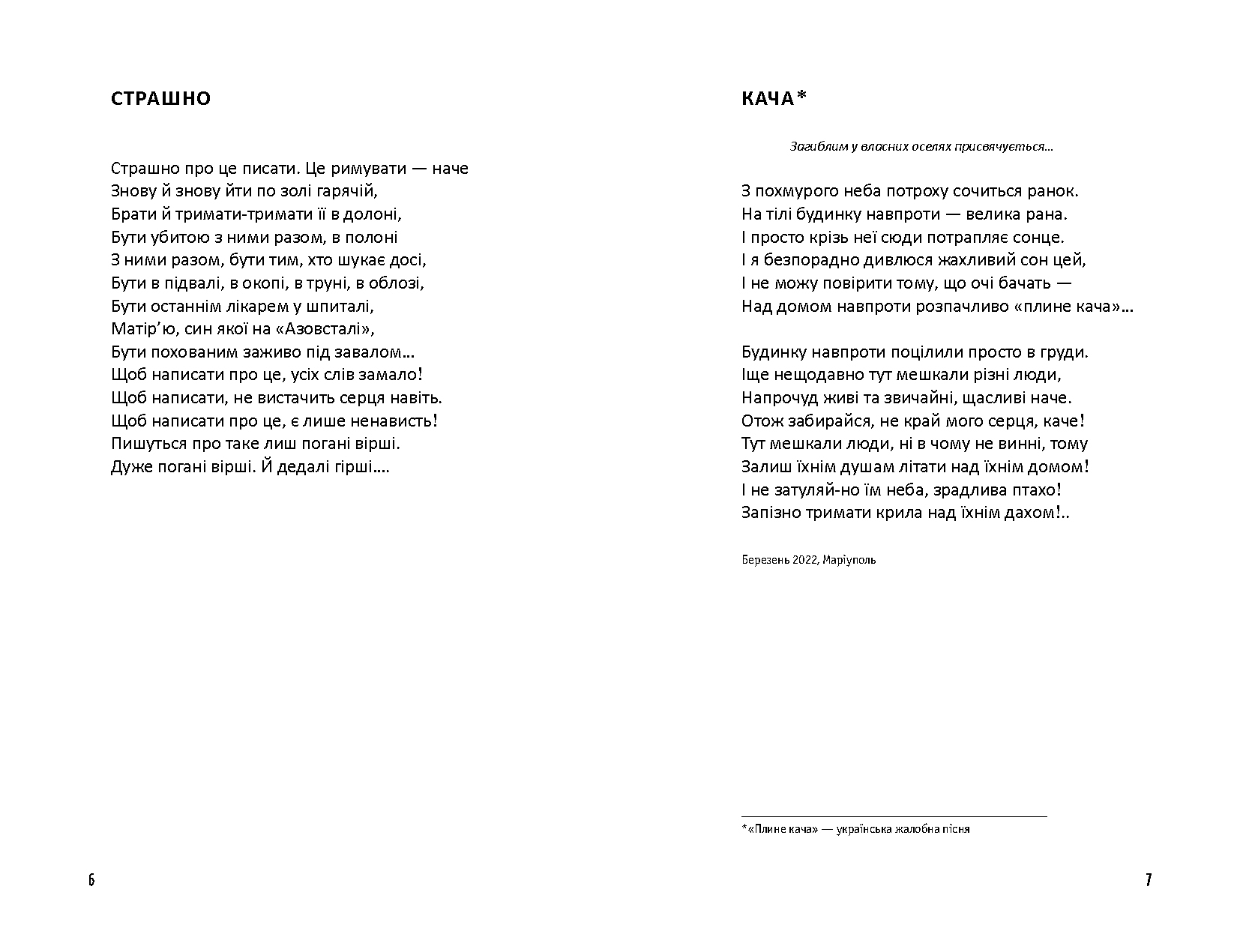 Свої вірші і тексти про війну Оксана Стоміна називає репортажними. Більшість із них присвячено подіям в оточеному Маріуполі, ще частина — це невідправлені віршовані листи до чоловіка...