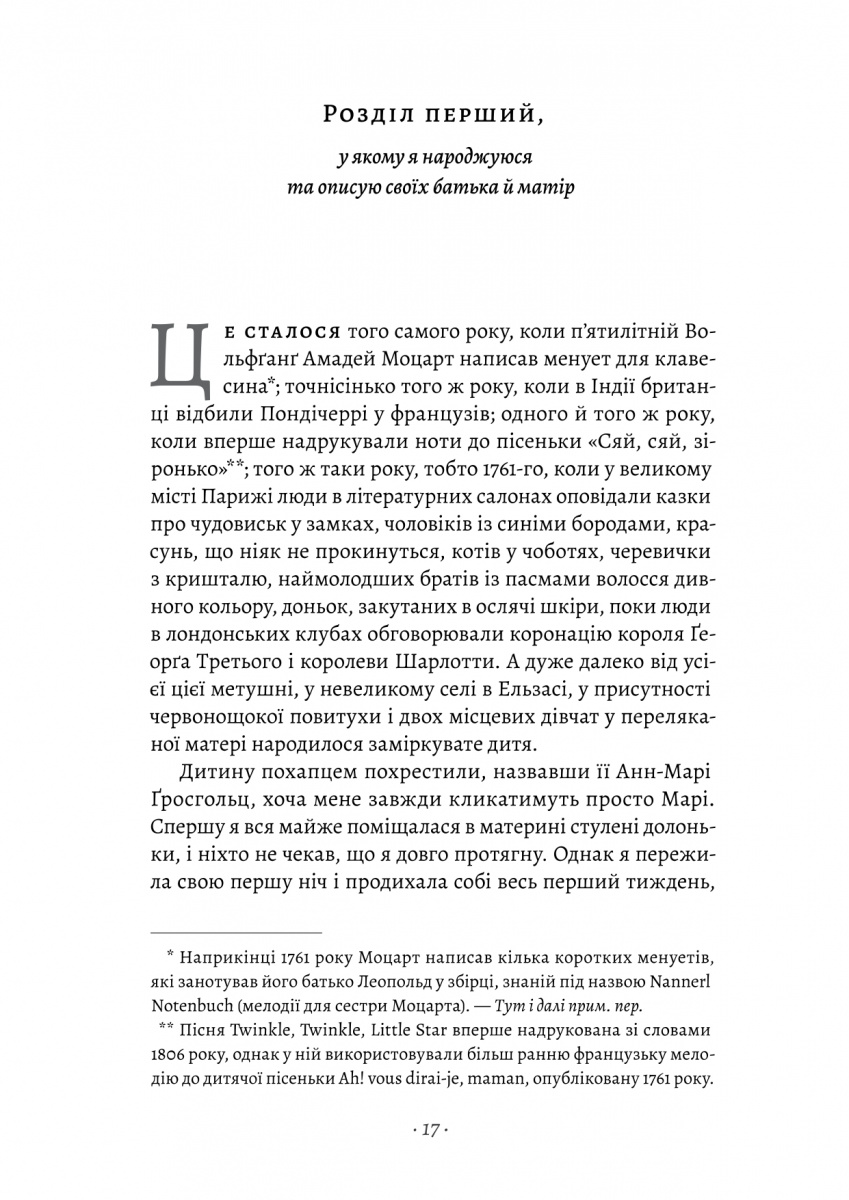 1761 рік. У швейцарському селі з'явилася на світ крихітна дівчинка на ім'я Марі, навіть не підозрюючи, які випробування підготувало їй життя. Дивна, але надзвичайно обдарована дитина, що рано втратила батьків, знайомиться із не менш ексцентричним вчителем — майстром воскових скульптур, який відкриває для неї світ паризького життя. Але в той час, коли скульптури Марі, відкривають їй двері Версалю, де вона стає наставницею принцеси і допомагає Марії-Антуанетті зберегти життя під час пологів — світ охоплює революція: натовпи стають дедалі гучнішими, вимагаючи змін... і голів.