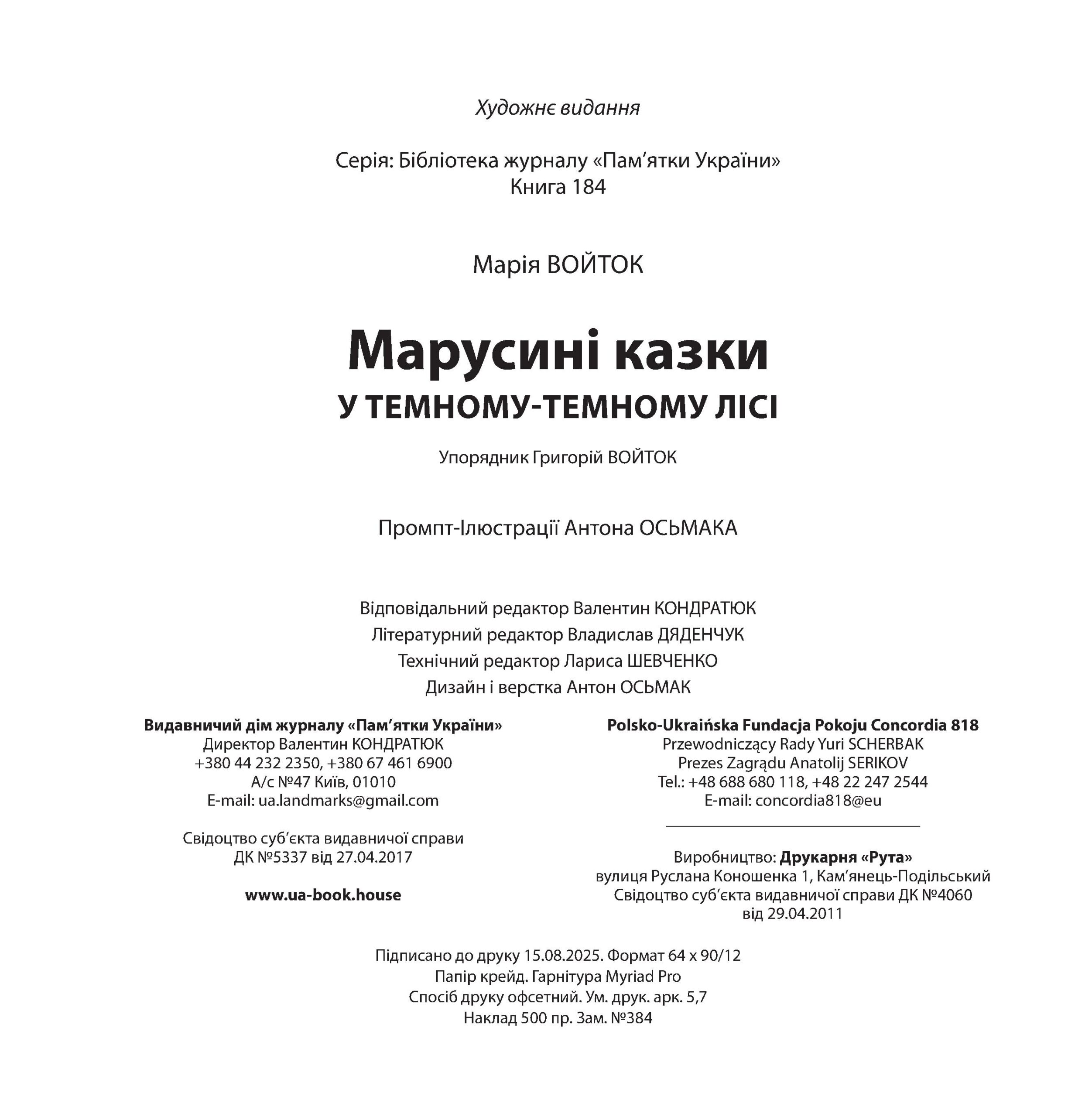 Если вы хотите заказать и купить книгу Марусині казки: У темному-темному лісі недорого с доставкой, то в интернет-магазине Book24 сделать это можно простым и удобным способом, оформив заказ в режиме онлайн. Для удобства выбора все книги распределены по разделам и подразделам, к тому же, благодаря навигации, поиск необходимого издания займет у вас всего несколько минут. У нас на сайте вы можете ознакомиться с кратким содержанием книги, почитать отзывы покупателей и просмотреть фото. Адресную доставку заказов по Украине гарантируем. Отправляем Новой Почтой книги во все города – в Киев, Харьков, Запорожье, Львов. Доставка занимает 1-5 дней. У нас выгодные условия продажи, в чем вы убедитесь, воспользовавшись нашим сервисом.