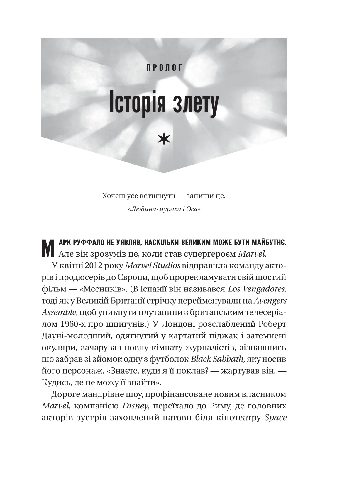Ця неофіційна хроніка заведе вас за лаштунки приголомшливого злету та несподівано непевного тріумфу найвпливовішого культурного феномену нашого часу — Кіновсесвіту Marvel.