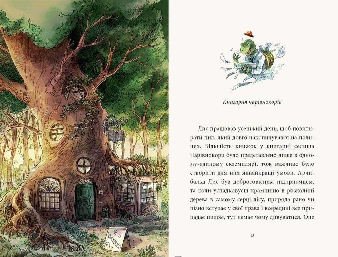 У лісі поблизу селища Чарівнокори, у дуплі дуба, притулилася книгарня Арчибальда Лиса. Там кожна тварина може залишити написану власноруч книгу та сподіватися, що одного дня її придбають. Чи багато там книжок? Уявіть собі…
