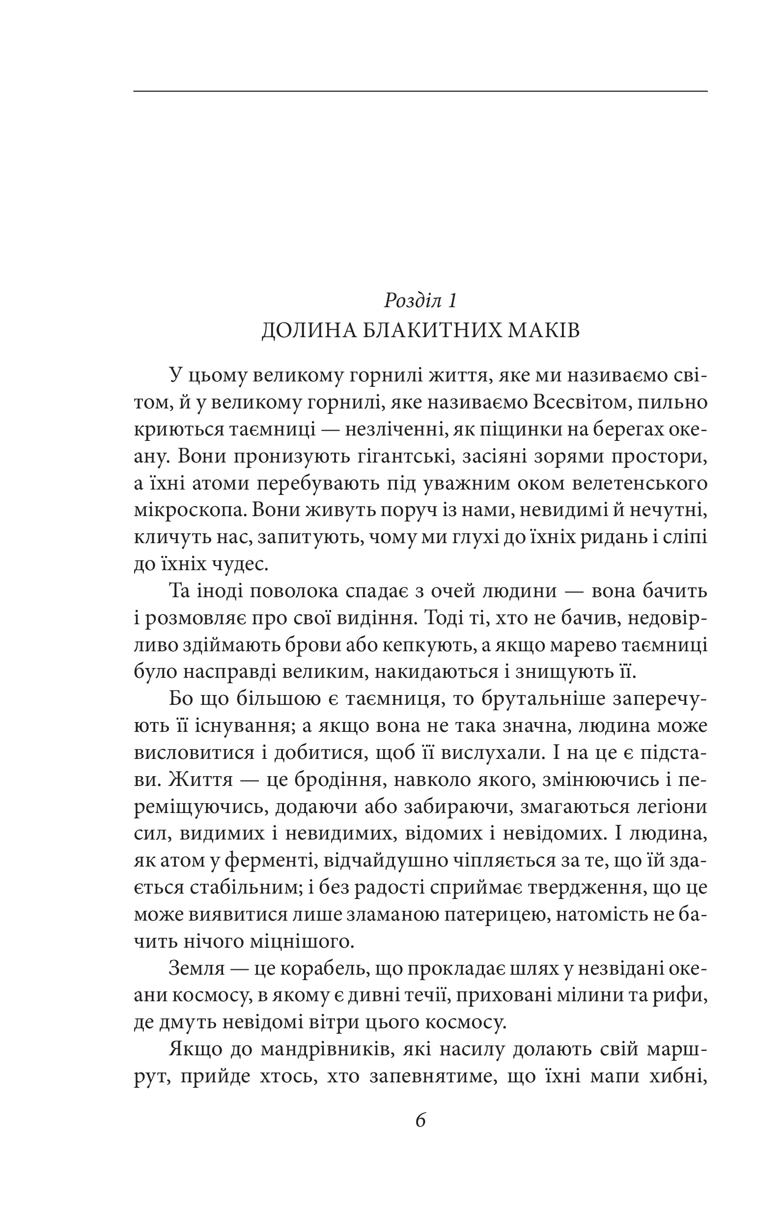 Це роман-фентезі, у якому є все: пригоди в далеких країнах, екзотичні декорації, істоти поза часом і простором, пояснені наукою таємниці, криваві війни, видива на межі свідомості та делікатний еротизм.