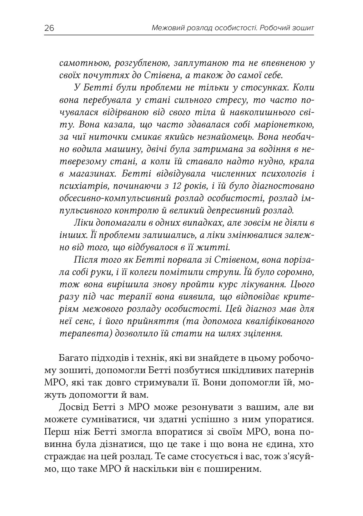 Межовий розлад особистості (МРО) колись вважався таким, що не піддається лікуванню. Багато хто схильний вірити в це й сьогодні. Однак Денієл Фокс не просто доводить, що це не так, а й пропонує дієвий шлях подолання МРО. За допомогою належного лікування, розвитку актуальних і корисних навичок, поглиблення розуміння про цей розлад і багатьох інших факторів можна стати на шлях зменшення впливу МРО і вийти за його межі.