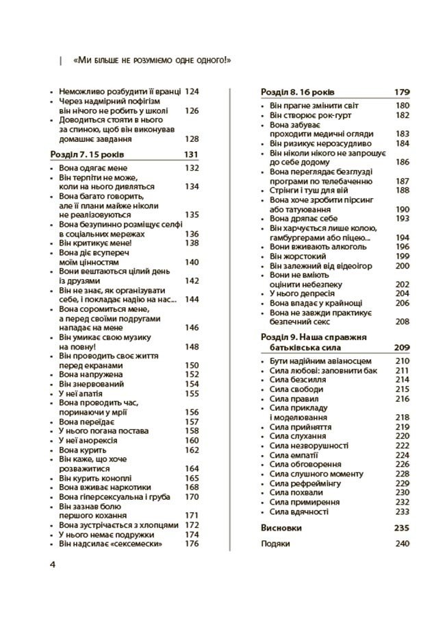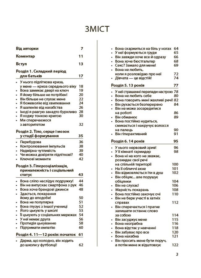 Підлітки 12—17 років переживають найглибшу в їхньому житті кризу, спричинену надзвичайно складними трансформаціями, що відбуваються в мозку і тілі. Залежність від ґаджетів, цькування в соціальних мережах і гіперактивність, нервові напади й анорексія, перше кохання і секс, алкоголь і канабіс, радикальність і нерозсудливість — невелика частина проблем, досліджених авторкою у книжці.