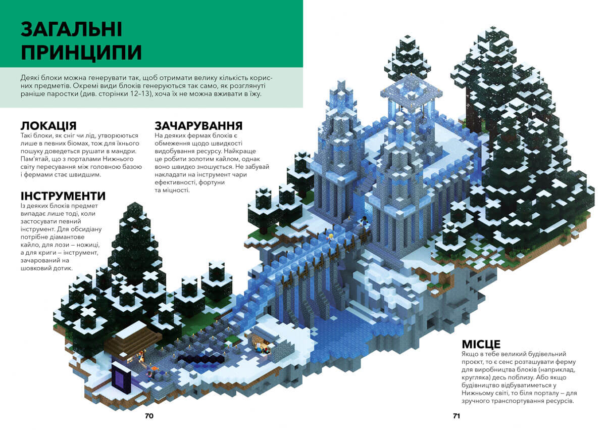 За допомогою офіційного довідника Minecraft ти дізнаєшся все необхідне про фермерство — від базового вирощування паростків до розведення худоби та ефективного захисту ферми від ворожих мобів. З інсайдерською інформацією та підказками від фахівців Mojang це найповніша інструкція для того, хто хоче забезпечити себе усім необхідним!