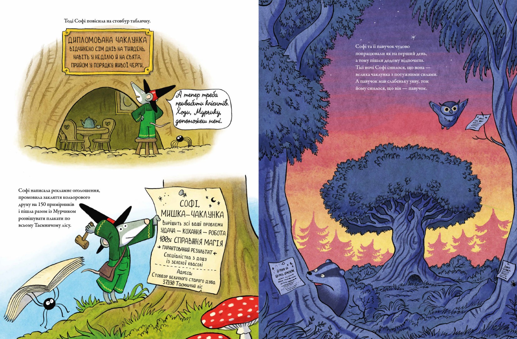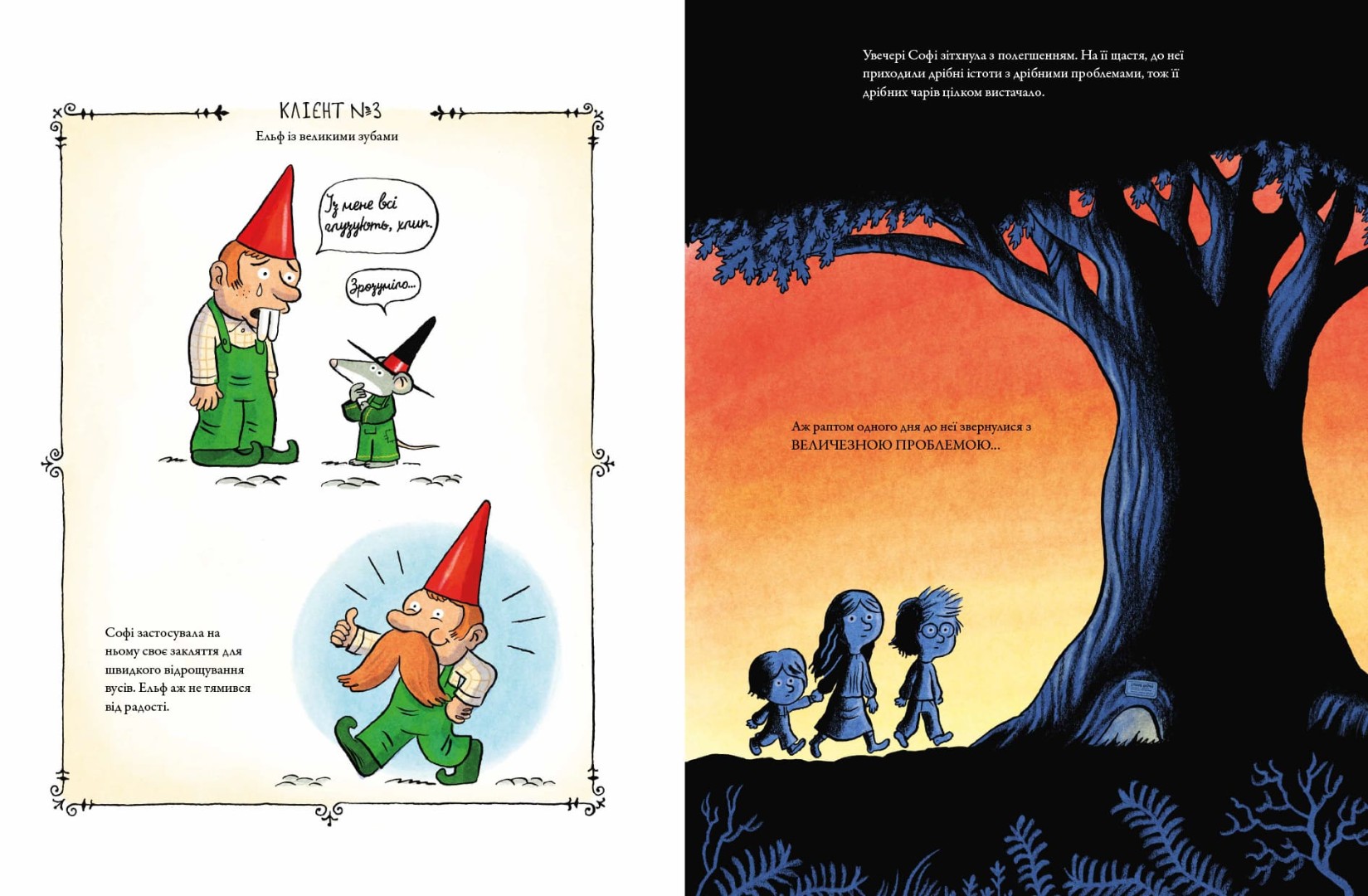 Сьогодні в Міжнародній школі чаклунок відбувається вручення дипломів. Серед випускників — Софі, перша мишка, яка отримала диплом! Разом із своїм павучком Мурчиком, Софі вирушає відкривати свою чаклунську практику. Вона займається дрібною магією, що дуже доречно, адже її маленькі клієнти довіряють їй свої маленькі проблеми. Але одного дня троє дітей звертаються до неї за допомогою з ДУЖЕ СЕРЙОЗНОЮ проблемою: в лісі оселилися людожери.