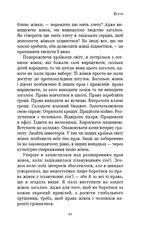 У 21 столітті сотні жінок не можуть самі вирішувати, коли їм ставати матерями і скільки дітей народжувати. Безліч жінок досі не мають права обрати собі чоловіка (за них це роблять батьки). А як щодо права на освіту? Або права заробляти власні гроші і витрачати їх? Чи права їздити за кермом автомобіля? В одних країнах жінки позбавлені цих та інших прав через закони, в інших – через культурний простір, релігію, традиції чи упередження.