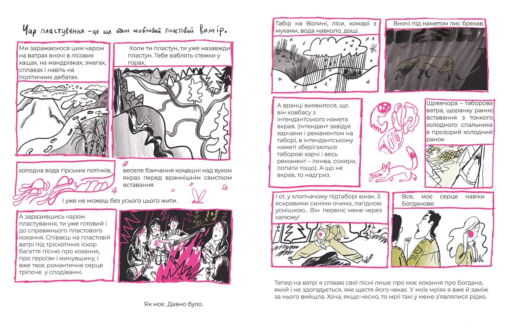 Вона розкриє всі таємниці неймовірного дива, яке скаути називають «чарівністю пластинації». Чарівність пластинації не в магії чи отруйних, привабливих любистках – любовних зіллях, ні. Йдеться про стан душі, коли ти справді закоханий у те, що робиш, коли цілий рік мрієш про стежки під важкими чоботами, про багряне полум’я багаття, іскри з якого здіймаються так високо, як око сягає, про випробування, які ти долаєш.