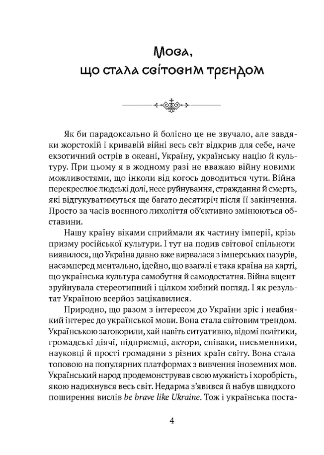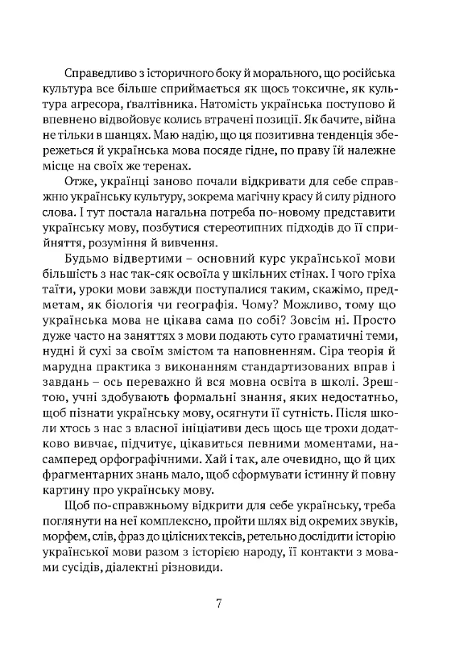 Видання має стислий формат. Тут немає води, ліричних відступів, пафосних слів – тільки конкретика, приправлена рясним фактажем. Тепер такі часи... З війною ми швидко перейшли від романтизму до реалізму. Не хочеться пустопорожньої балаканини, зайвих слів і довгих фраз, що часто буває в подібних популярних лінгвістичних роботах. Хочеться все по суті. Пропонована книга без винятку буде цікавою всім, хто прагне краще пізнати мову незламного українського народу.