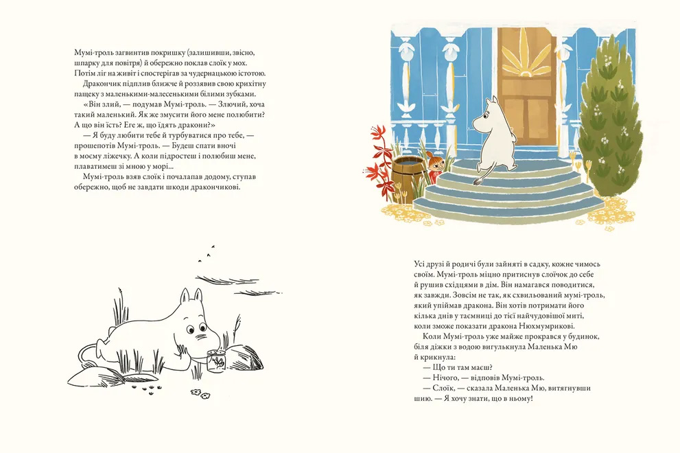 Якось серпневого ранку Мумі-троль упіймав у воді крихітного дракончика і одразу вирішив, що вони стануть найліпшими приятелями. Дракончик виявився дуже спритним, страшенно злючим і до того ж зовсім не збирався приятелювати з Мумі-тролем.