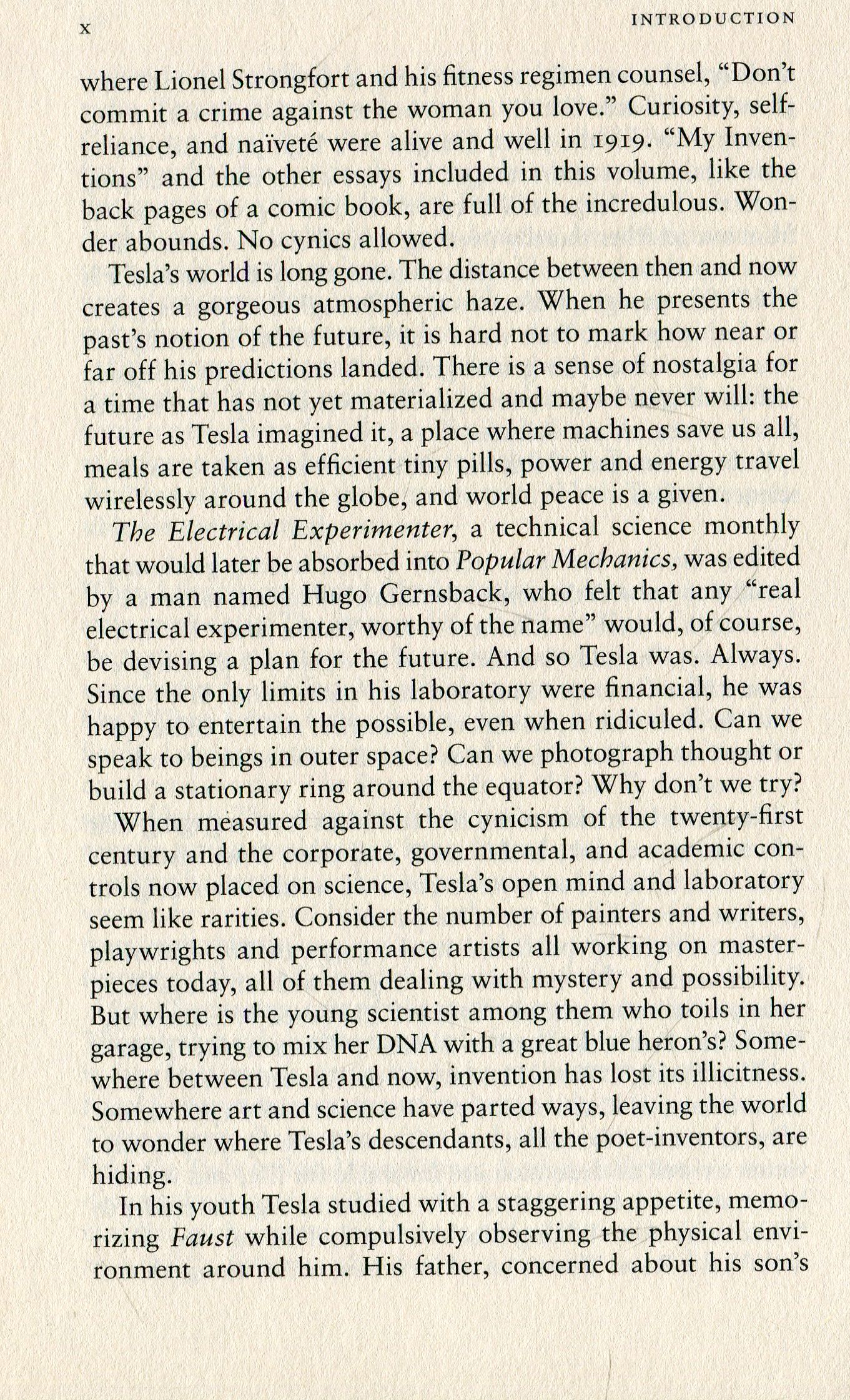 Nikola Tesla's life is as interesting for his idiosyncrasy as it is for his brilliance. The inventor's mind knew no limits and his incredible sense of possibility rings through his memoir. This authorative volume of My Inventions includes three additional articles by Tesla which were published in The Electrical Experimenter magazine and represent the breadth of his interests: 'Tesla would pour Lightning from Airships to Consume Foe' (1916), 'The Action of The Eye' (1893), 'The Problem of Increasing Human Energy' (1900). Samantha Hunt, author of The Invention of Everything Else, contributes an introduction to Tesla's works, separating fact from fiction (there are published works out there that attest Tesla was an alien), while maintaining the natural awe of Tesla's eccentric existence.