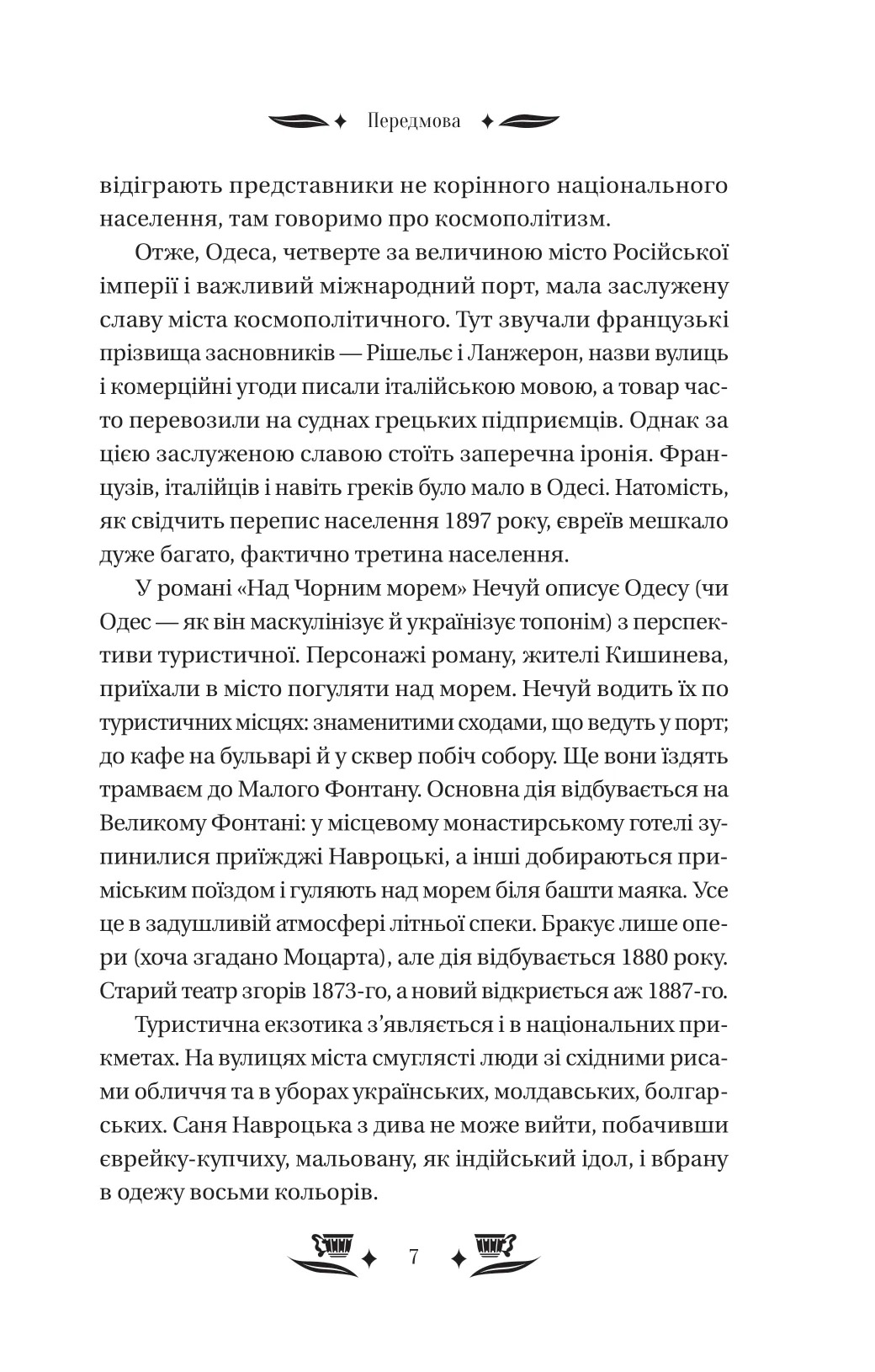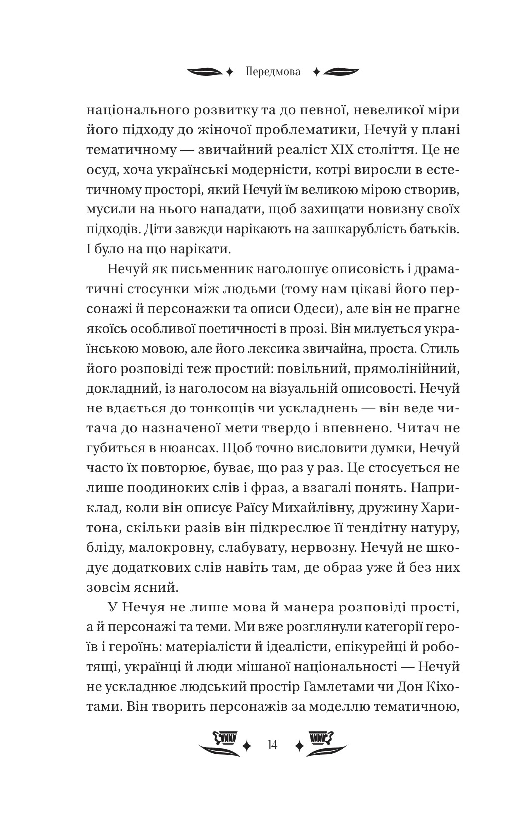 Це перший в українській літературі роман про Одесу, яку Нечуй-Левицький називає в чоловічому роді — Одес. Його космополітична, купецька, епікурейська Одеса — це простір для любові, забави, краси і споживання. На цьому тлі роз- гортаються два ідейні конфлікти: національна культура проти космополітизму та ідеалізм проти споживацтва й матеріалізму.