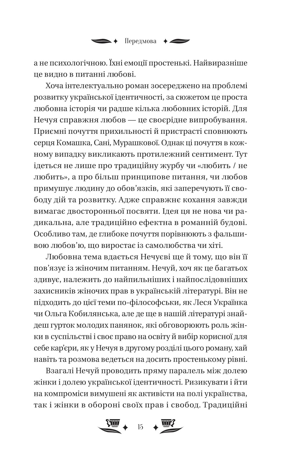 Інтелектуально роман зосереджено на питанні розвитку української іден- тичності, а за сюжетом це кілька любовних історій. Письменник укотре виступає в ньому як захисник жіночих прав. А проте найбільше запам’ятаються з роману описи краєвидів над Чорним морем та взаємини між людьми — простими, сміш- ними і вічно живими, що їх подарував нам веселий Нечуй.