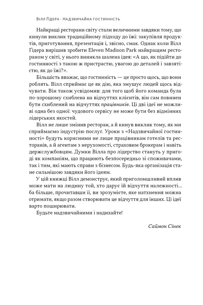 Ви можете бути звичайними — «ще одним» бізнесом у списку тисяч схожих бізнесів. А можете стати надзвичайними і навіть легендарними. Якщо обираєте друге, тоді захоплива історія становлення надзвичайної гостинності Вілла Ґідери — книжковий вибір № 1.