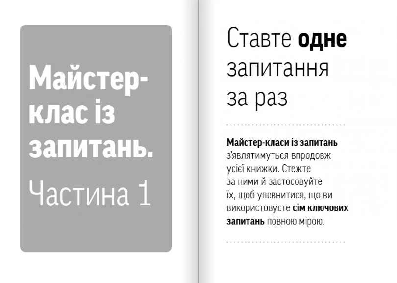 «Навички коучингу» справді змінюють спосіб спілкування. Ця книжка дуже проста у читанні, але неймовірно глибока за змістом. Автор пропонує лише сім ключових запитань, і саме вони допомагають чути людей краще та відкривати їхній справжній потенціал. Головна ідея книжки: наставництво не потребує складних методик — достатньо правильно спрямовувати діалог.