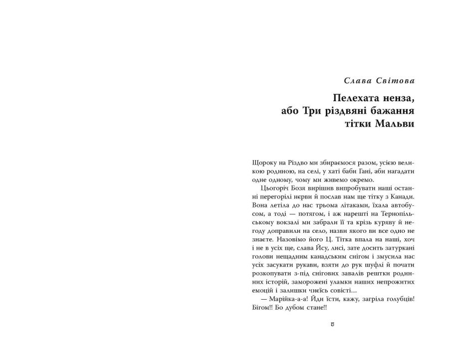 Оповідання про побачення з найгіршим з усіх Миколаїв, про створення нової сім’ї напередодні Різдва й про зустріч Нового року. А ще — про п’яні пригоди письменника й приїзд тітоньки з Канади. Оповідання про військових і їхні родини. Це історії про неідеальних людей в неідеальній країні, проте в сповнений див час зимових свят від Андрія до Маланки. Стосунки, традиції, передсвяткова метушня, втрати і, звісно, надія зустрічаються в цій збірці — дорослій, пряній, геть не солодкаво-різдвяній.