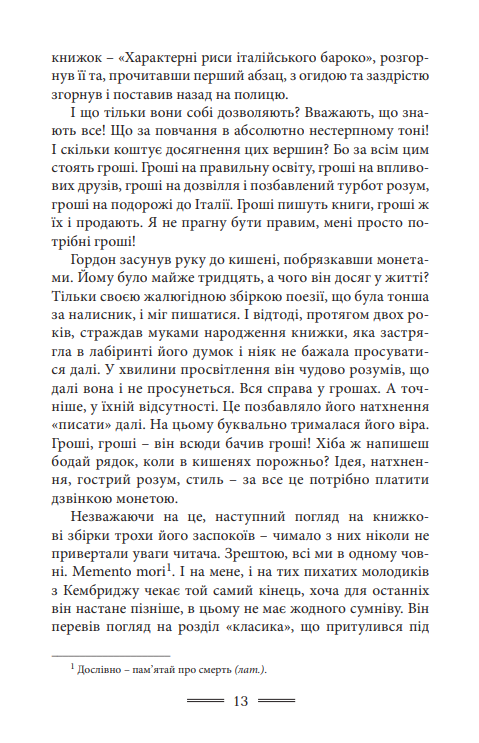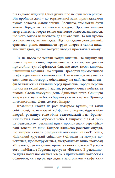 Гроші – вони все вирішують, все контролюють, відчиняють двері пристойних будинків і салонів, знайомлять з потрібними людьми, наділяють їхнього господаря чарівною здатністю подобатися жінкам і друзям, вони, по суті, і є саме життя. Але хіба так має бути? Хіба має життя людей аж так залежати від грошей, а надто від їх браку? Чи можливо, живучи в сучасному суспільстві, позбутися нав’язливої влади грошей, оголосити їм війну, а заодно й усім ознакам «надійності», «порядності» і «благопристойності», головним символом яких є аспідистра, чиї отруйно-зелені пагони стирчать з горщиків у вікнах кожної пристойної оселі?
