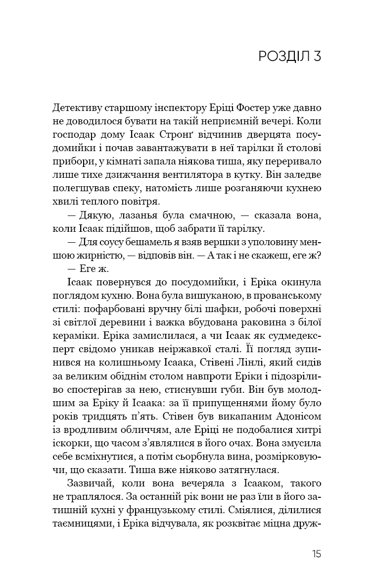 Глухої спекотної літньої ночі, детективку Еріку Фостер викликають на місце вбивства. Жертва — успішний лікар, його знаходять задушеним у ліжку, зі щільно закрученим поліетиленовим пакетом на голові, зв’язаними зап’ястками та виряченими очима. За кілька днів, за таких самих обставин мертвою знаходять ще одну жертву. Розслідуючи ці злочини, Еріка та її команда натрапляють на слід методичного серійного вбивці — він ретельно вистежує своїх жертв, перш ніж вибрати влучний момент для завдання удару. Злочинець обирає лише неодружених чоловіків, які ведуть дуже усамітнене життя. Чому їхнє минуле огорнуте таємницею? Що пов’язує їх усіх із вбивцею?