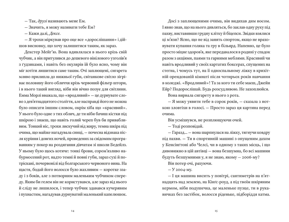 Емма Морлі — розумна і дотепна, має чіткі переконання і рішуче налаштована змінити світ. Вона не терпить пафосу і пустослів’я. Мріє стати письменницею і не втратити себе. Тим часом легковажного і самовпевненого Декстера Мейг’ю поглинув світ шоу-бізнесу та розкоші. І що довше це триває, то більше він почувається самотнім.