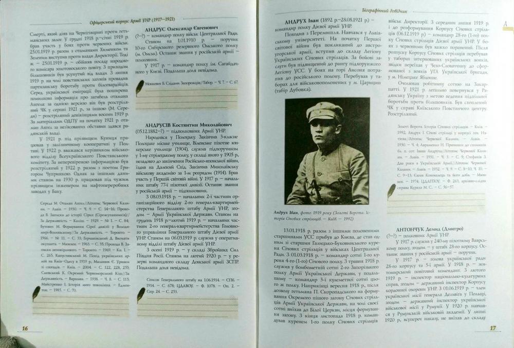 Біографічний довідник містить відомості більш як про тисячу генералів та старшин Армії Української Народної Республіки, а також командирів армійських з’єднань Армії Української Держави гетьмана П. Скоропадського. Наприкінці книги подається загальний список генералів та старшин Генерального штабу Армії Української Держави з докладними біографічними відомостями.