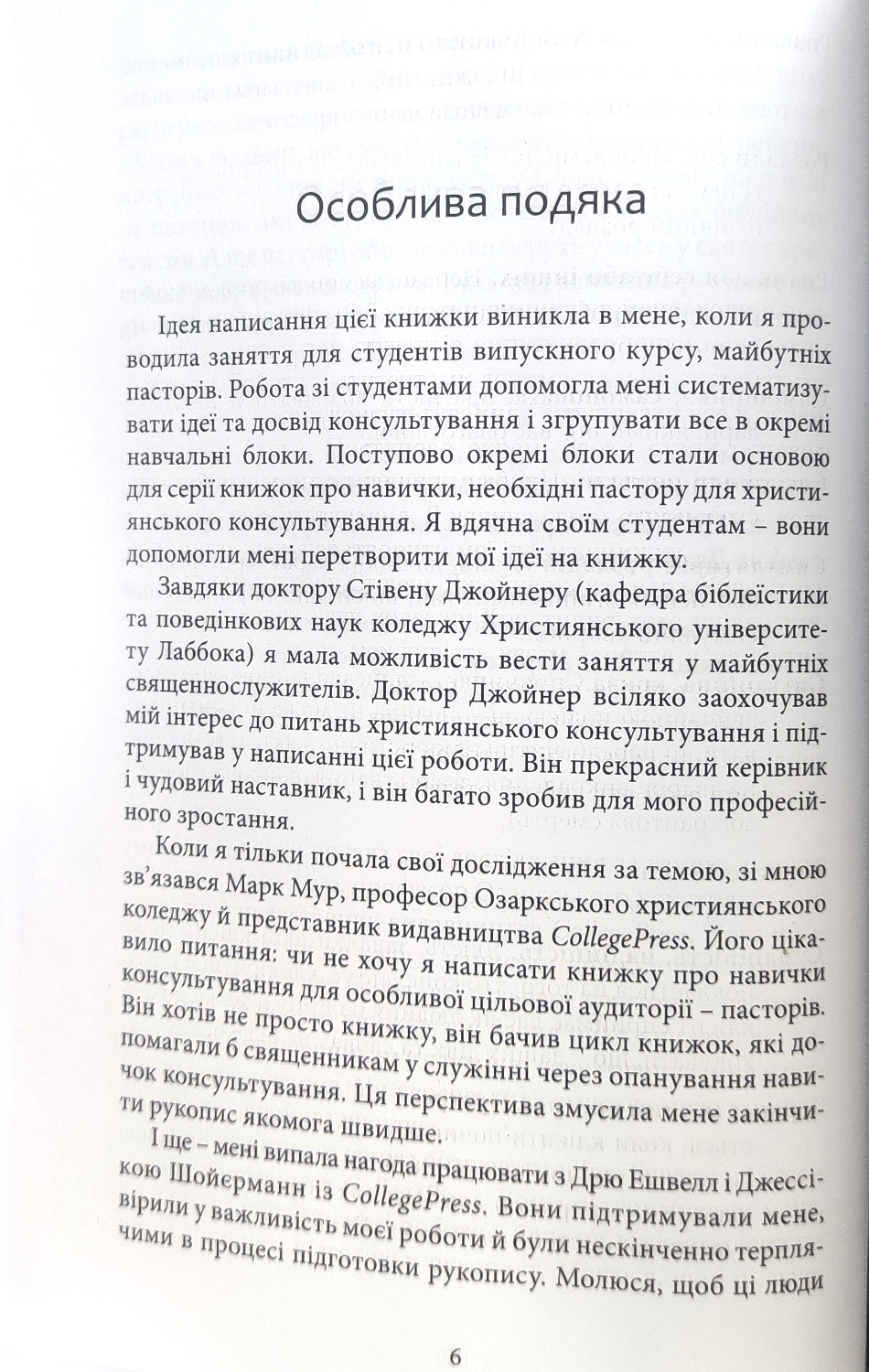 Мета моєї книжки - озброїти пасторів техніками й навичками, необхідними для ефективного християнського консультування. Книжку сфокусовано здебільшого на розвитку навичок, що допоможуть пасторам провести оцінювання та втручання в ситуаціях, які пов"язані з труднощами в емоційній сфері, у стосунках з іншими людьми, із проблемами кризових ситуацій, проблемами адаптації та психічними розладами.