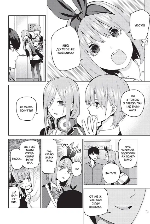 Після лісового табору Футаро потрапляє до лікарні. П’ять сестер Накано переймаються його здоров’ям і тихцем навідують свого репетитора. Проте там, де перебувають ці красуні, завжди здіймається якась буча. Розмова з Іцукі ставить Футаро в глухий кут: чому він так відчайдушно вчиться?