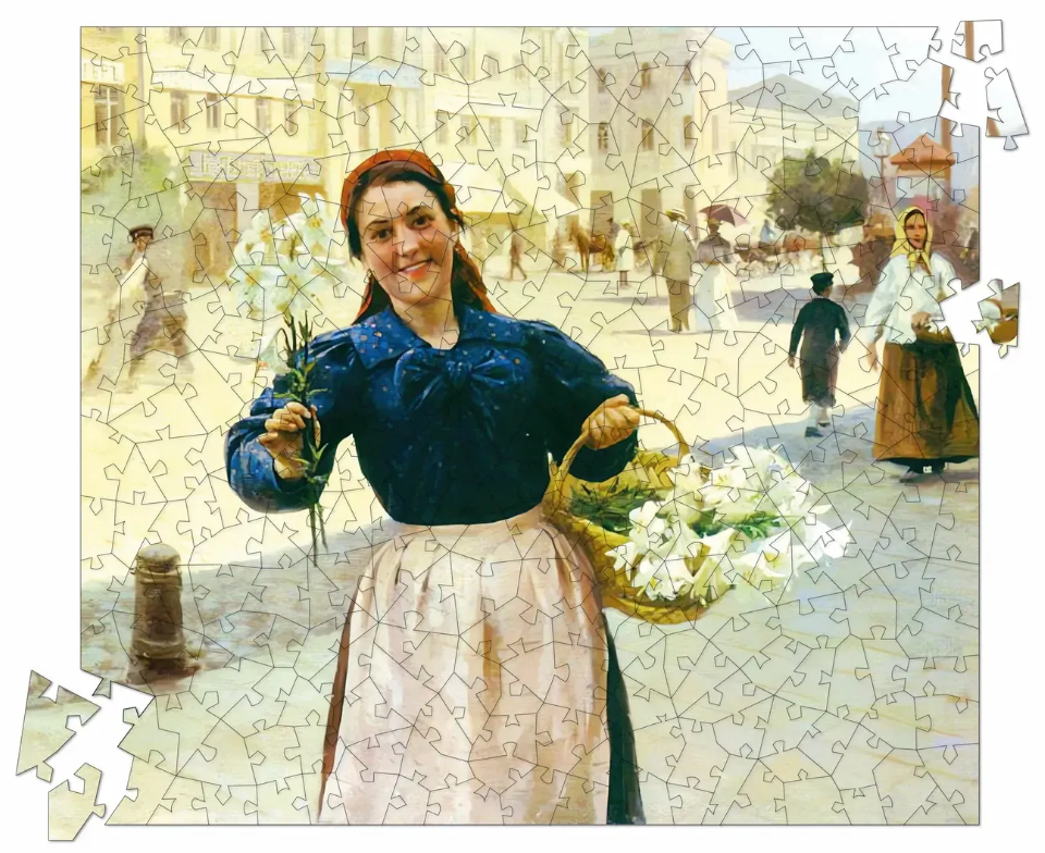 Пимоненко не лише малював, а й виховував нове покоління художників, працюючи викладачем малювання у Художній школі Миколи Мурашка, а після її закриття — у Київському політехнічному інституті. Серед його прямих учнів були такі майбутні зірки, як Олександр Мурашко, Олександра Екстер, Абрам Маневич, Казимир Малевич. У цьому пазлі відтворено картину Миколи Пимоненко “Київська квіткарка”. Серед колекції наших пазлів Ви можете також знайти картину Казимира Малевича “Квіткарка”, яка є омажем на роботу Пимоненка, як жест вдячності і поваги до свого вчителя. Робота Миколи Пимоненка вплинула на формування українського національного стилю в живописі, а також стала містком між академічним реалізмом і модерними тенденціями початку ХХ століття.