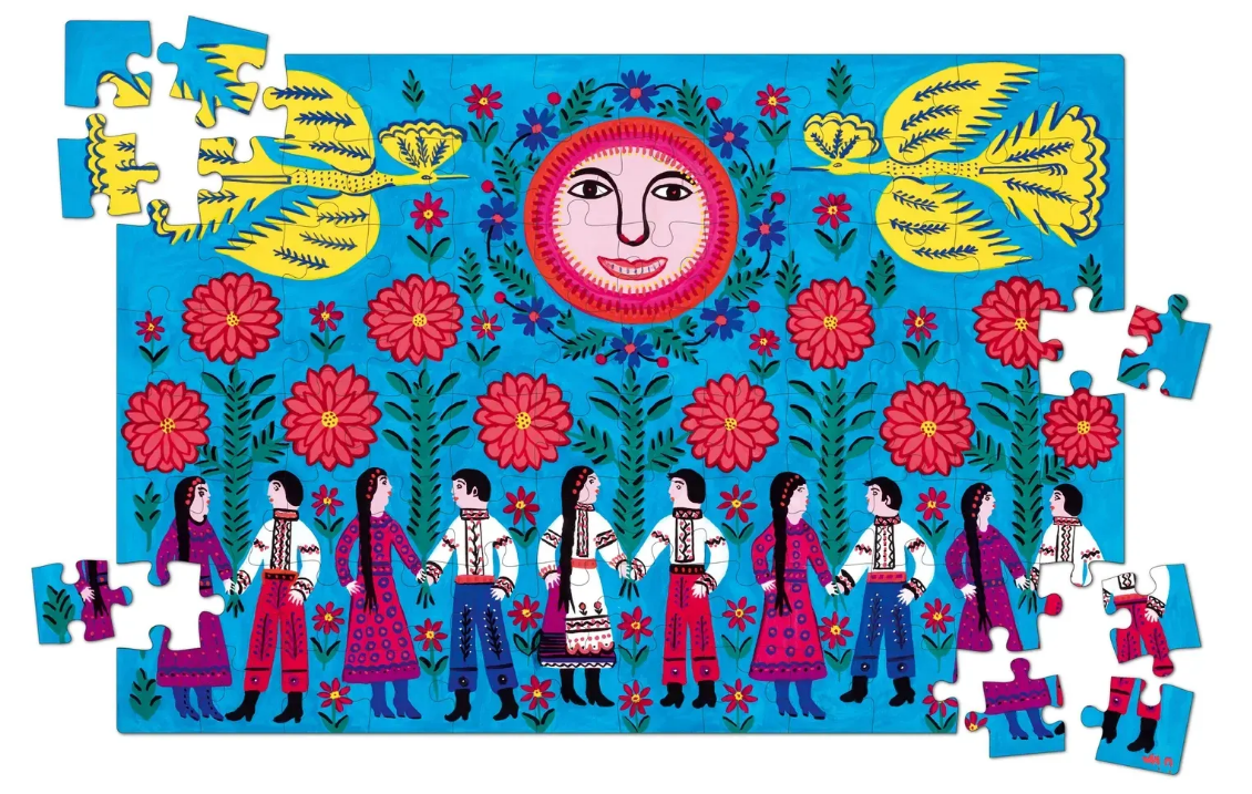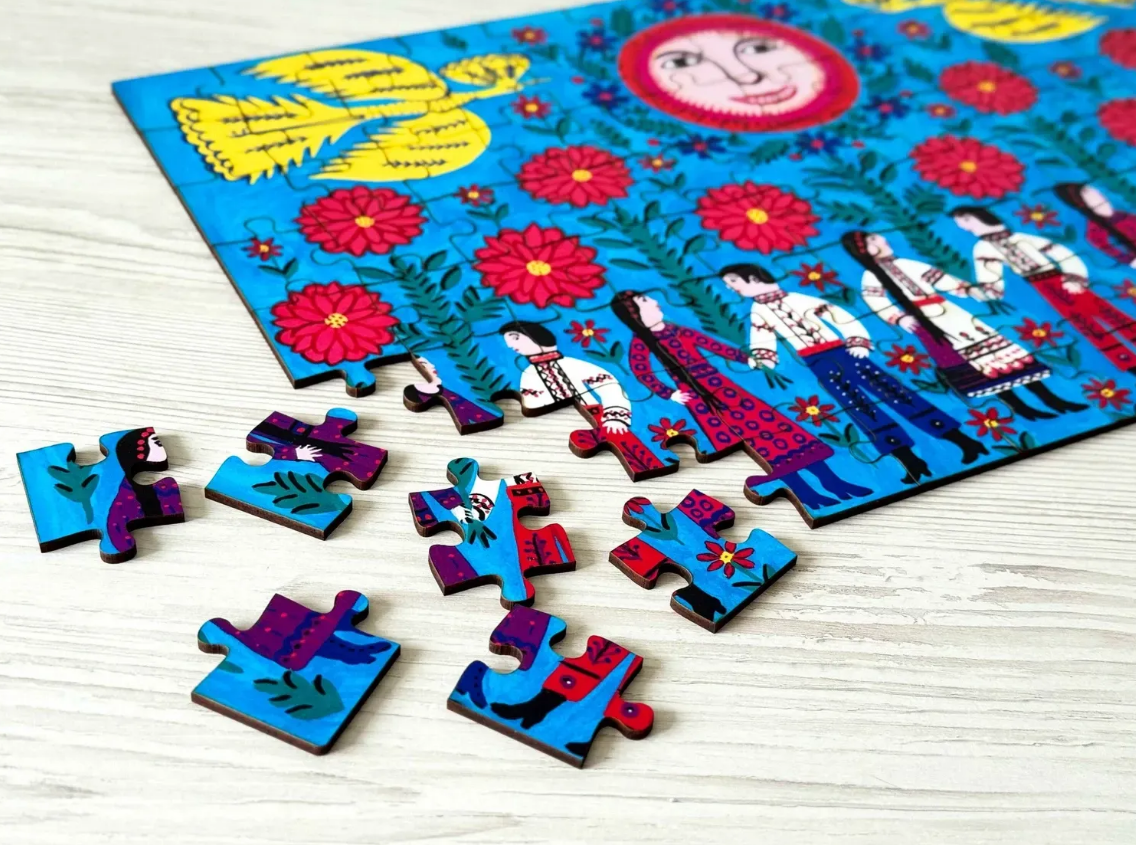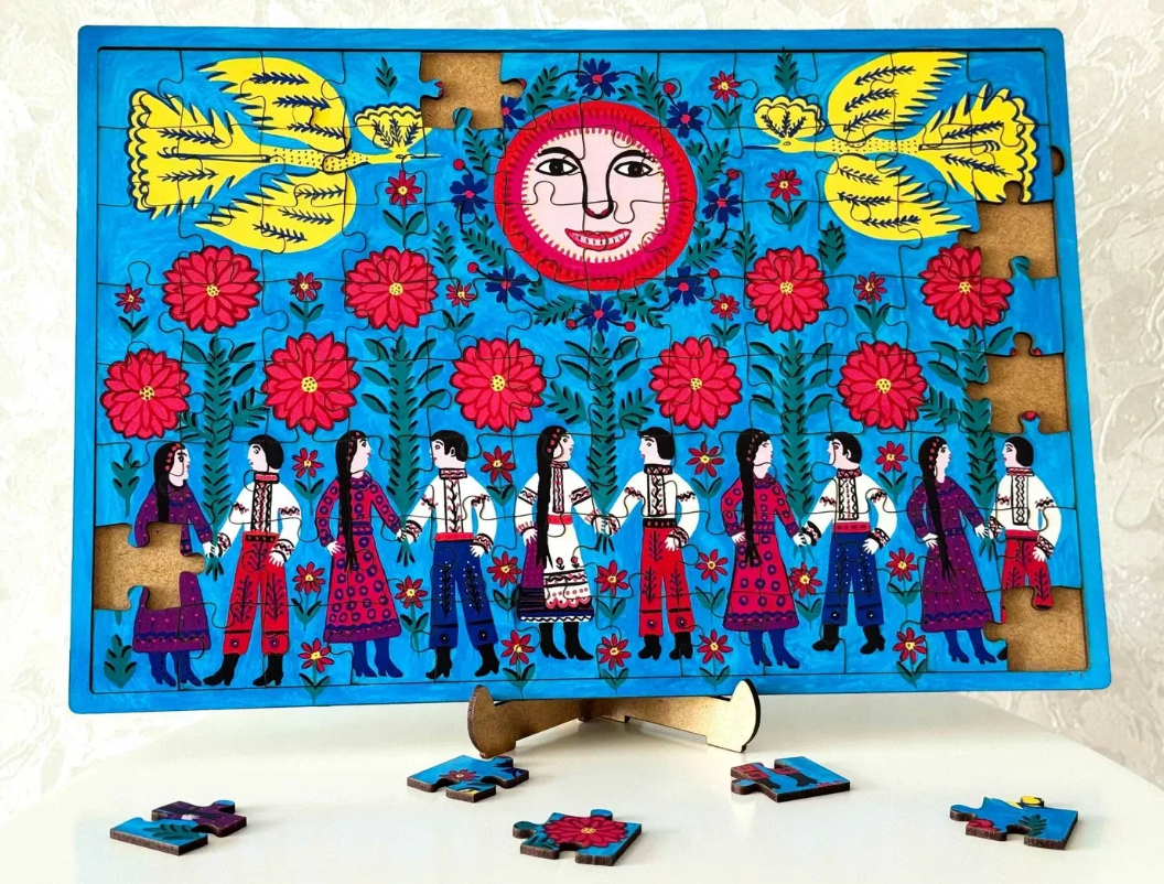 Дерев’яний пазл в рамці «Наша Армія, Наші Хранителі» створено за мотивами картини Марії Примаченко - однієї з найвідоміших українських художниць. Її роботи відзначаються яскравими кольорами, казковими істотами та символами, які зрозумілі як дітям, так і дорослим. Збираючи цей пазл, Ви торкаєтесь унікального художнього світу, де поєднано народні мотиви, фантастичне мислення й неповторний стиль, що вирізняє творчість Марії Примаченко серед інших.