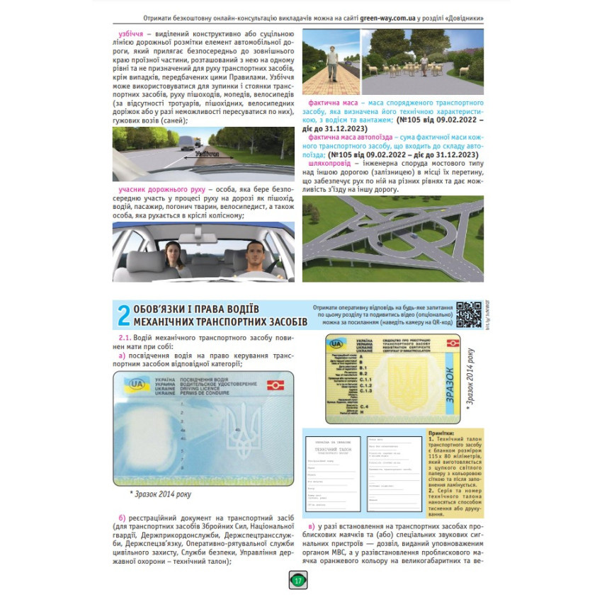 Кольорові ілюстрації, дорожні знаки та розмітку у тексті Правил