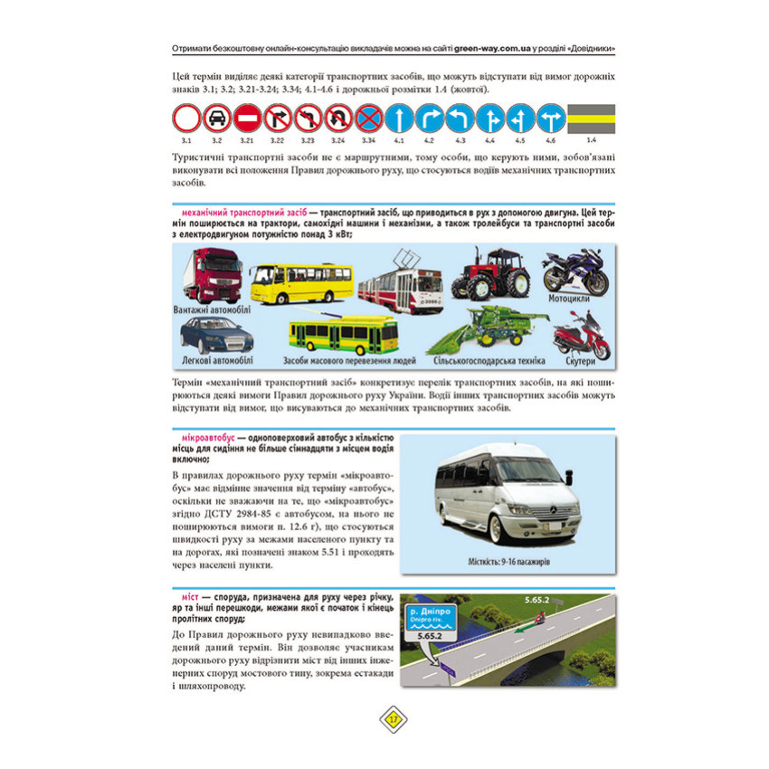 Кольорові ілюстрації, дорожні знаки та розмітку у тексті Правил