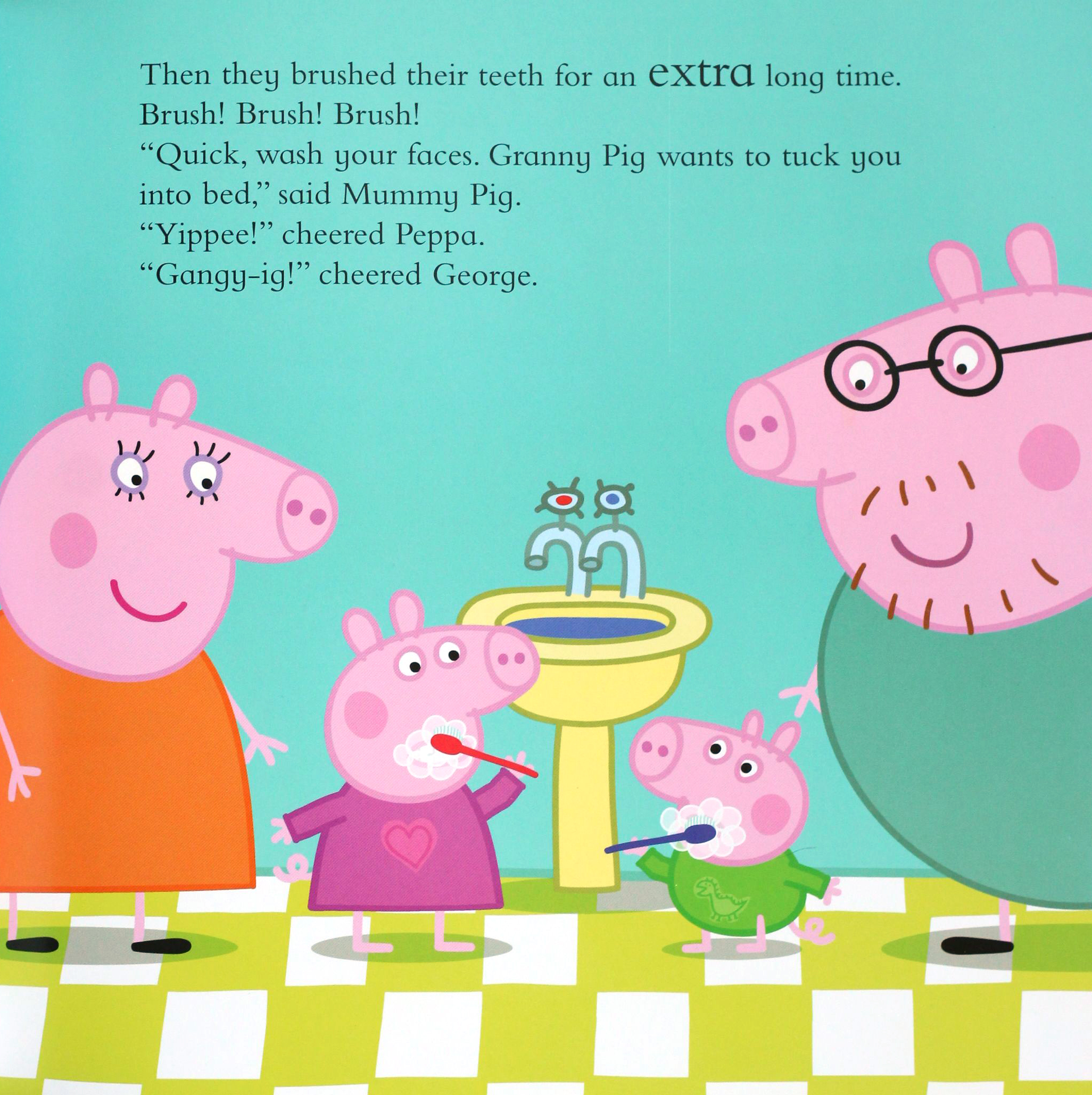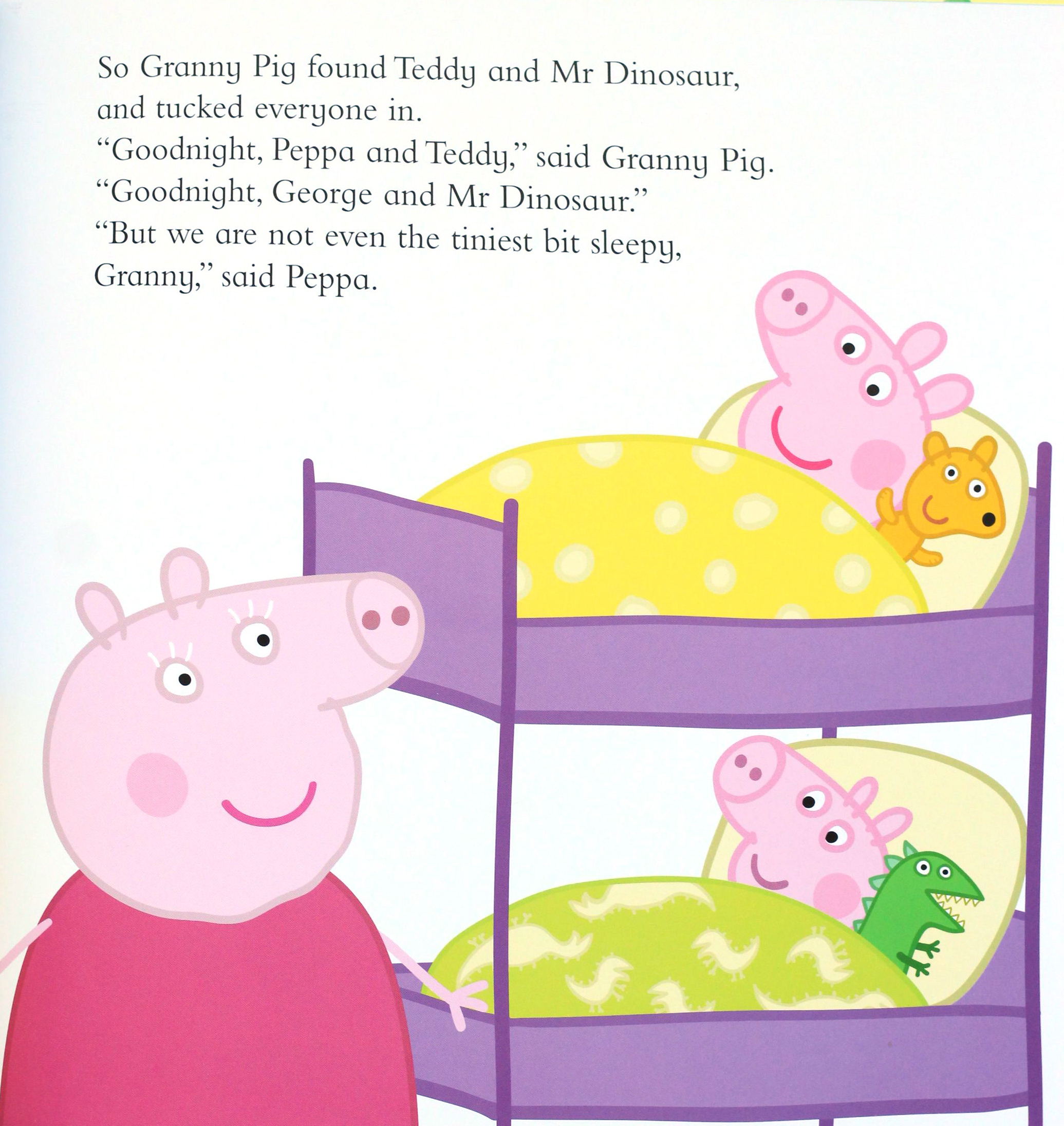A brand new Peppa bedtime story to help send little piggies to sleep! It's time for bed but Peppa and George are absolutely, definitely, not even a little bit tired in this delightful brand new picture book. A bedtime story from Granny Pig, Grandpa Pig, Daddy Pig AND Mummy Pig should send them to sleep... Shouldn't it? This picture book story is perfect for reading at bedtime, playtime and over and over again!