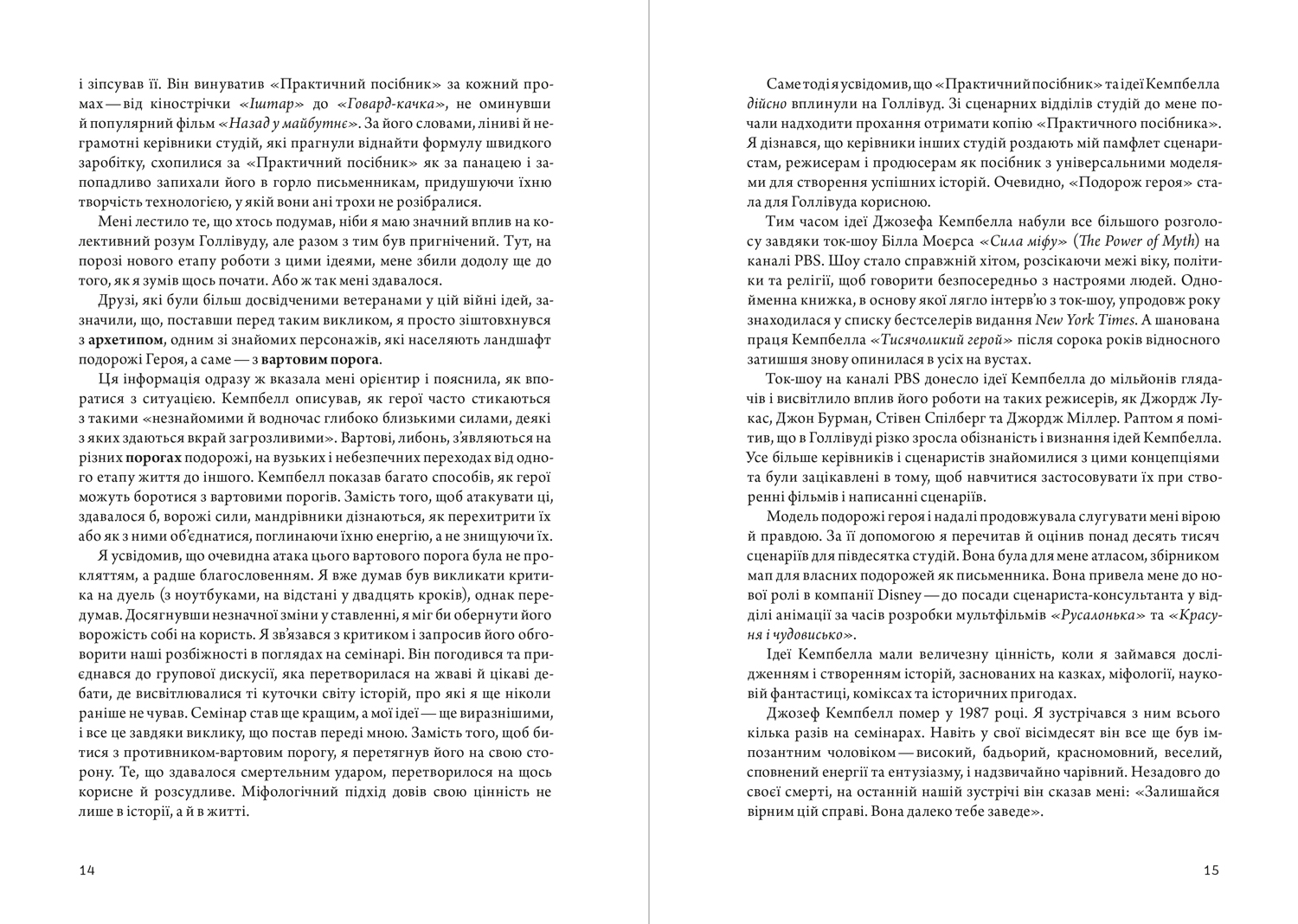 «Подорож письменника» — це розвиток цієї доповіді, яка детально описує дванадцятиетапний, натхненний міфологією метод, що змінив ставлення Голлівуду до кінематографічної розповіді. Формат, який колись рідко виходив за межі традиційного триактного плану, прийняв комплексну теорію Воґлера про структуру історії та розвиток персонажів і став загальновизнаним.Збагачена прикладами з міфів, казок і класичних фільмів, ця книга за останні 25 років змінила і продовжує змінювати вигляд сценарного мистецтва в усьому світі.