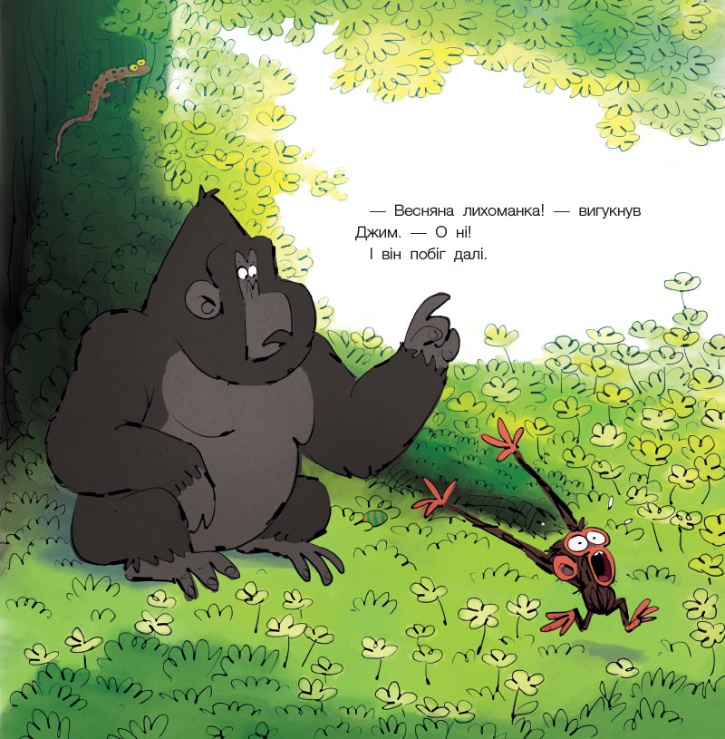 Одного весняного ранку Джим Панзе прокинувся й одразу побіг. Він сміявся, кричав і взагалі почувався дурником. Друзі сказали йому, що це весняна лихоманка. Лихоманка? Її треба терміново лікувати? Можна спробувати просто заспокоїтися. Але Джиму таке не до душі. Він хоче збирати квіти, сміятися й робити інші весняні справи…