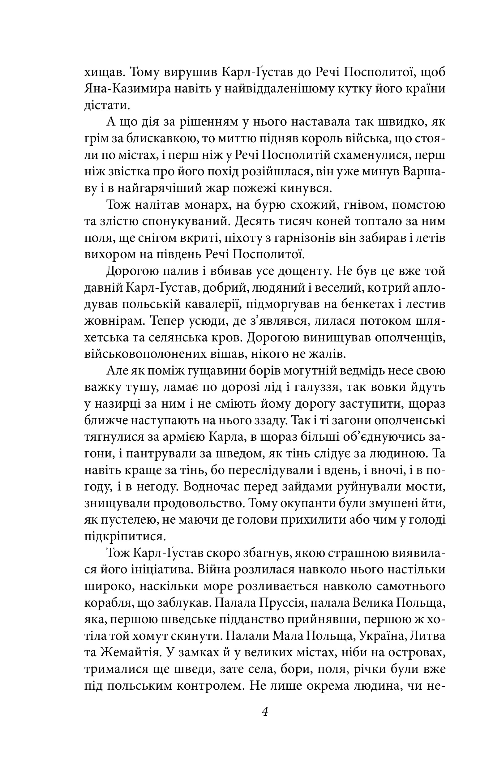 «Потоп» — друга частина трилогії Генрика Сенкевича, яка починається романом «Вогнем і мечем», а завершує її «Пан Володийовський». Її сюжет відтворює картини визвольної війни польської шляхти проти шведської інтервенції, відомої як Шведський потоп. У третьому томі Анджей Кміциц стає героєм численних воєнних подій, але завдяки хоробрості й кмітливості виходить переможцем з майже безнадійних ситуацій. Він рятує від загибелі побратимів і незнайомців, навіть не підозрюючи, що кохана Оленька Білевич чи не найбільше потребує його допомоги. Зрештою вона вирішує сховатися від світу, а радше від себе у стінах монастиря.