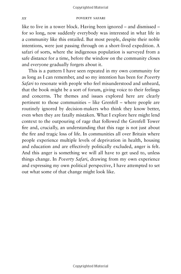 Darren McGarvey has experienced poverty and its devastating effects first-hand. He knows why people from deprived communities all around Britain feel angry and unheard. And he wants to explain... So he invites you to come on a safari of sorts. But not the kind where the wildlife is surveyed from a safe distance. This book takes you inside the experience of poverty to show how the pressures really feel and how hard their legacy is to overcome. Arguing that both the political left and right misunderstand poverty as it is actually lived, McGarvey sets out what everybody – including himself – could do to change things. Razor-sharp, fearless and brutally honest, Poverty Safari is an unforgettable insight into modern Britain.