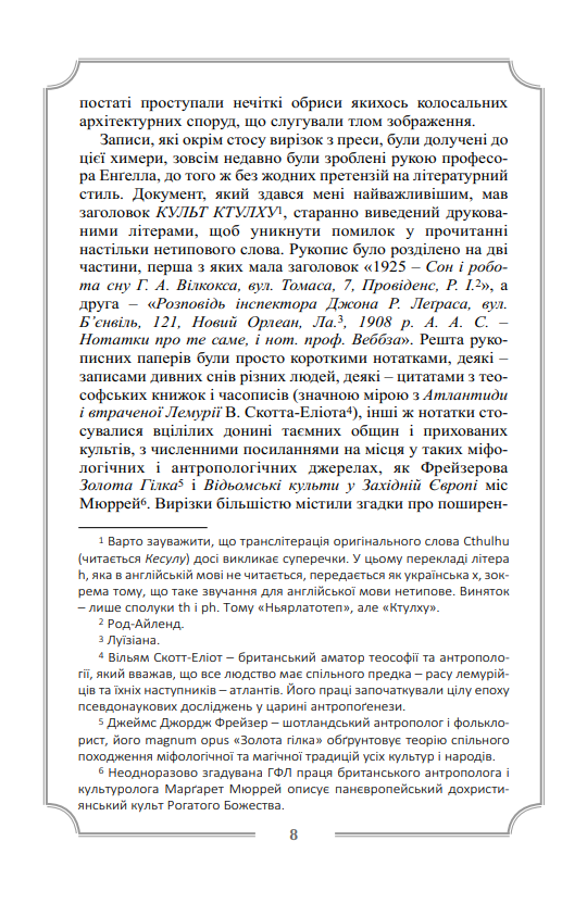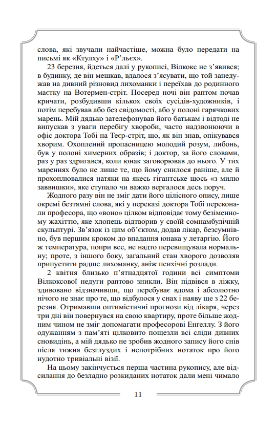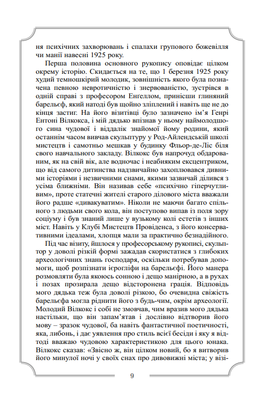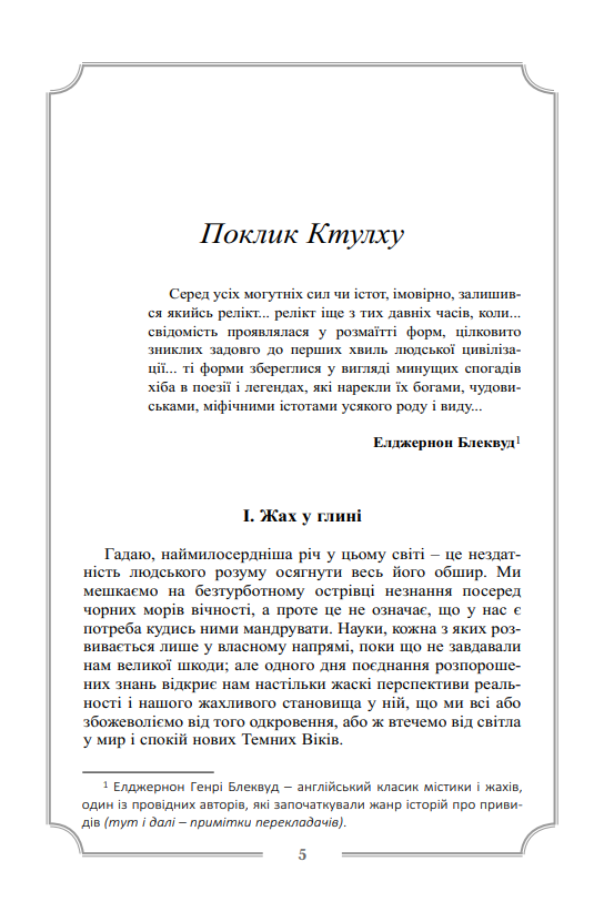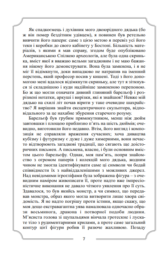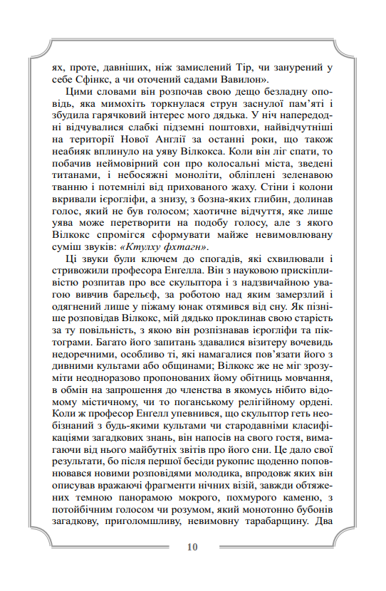 Другий том повного зібрання прозових творів видатного майстра літератури «загадкового та потойбічного» Г. Ф. Лавкрафта охоплює його прозу, написану у період з 1926 по 1928 роки, і містить такі класичні і переважно розлогі твори як «Поклик Ктулху», «Сновидні пошуки незвіданого Кадата», «Справа Чарльза Декстера Ворда», «Барва з позамежжя світу», «Жахіття Данвіча». Саме у цих повістях остаточно розкривається талант Лавкрафта, як майстерного оповідача неймовірно загадкових і химерних історій, а також автора багатьох самобутніх і досить оригінальних міфогенних та містичних концепцій.