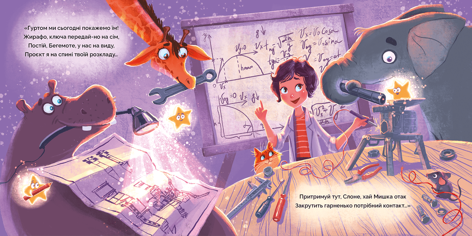 Науковиця Оля щоночі розглядає в телескоп зірки та будує пускову установку, щоб досліджувати космос. Та одного дня неподалік від її будинку стається лихо — від ракетного обстрілу потерпає зоопарк. Четверо нажаханих тварин приходять до Олі та просять її допомогти. Чи наважиться дослідниця відкласти свою мрію про космос та побудувати нову пускову установку для захисту новий друзів?