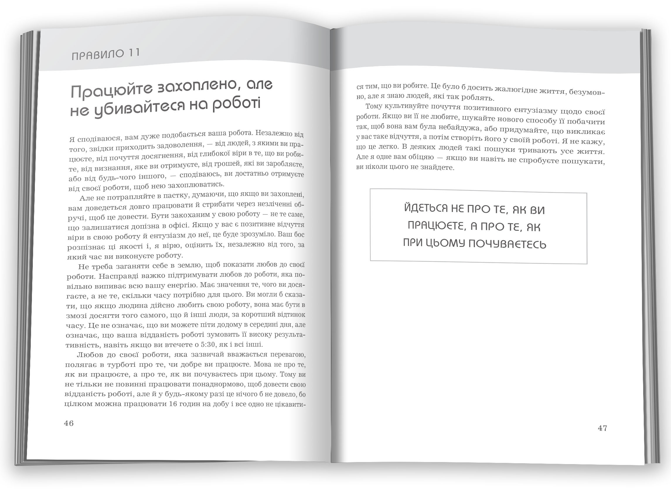 В одному з найуспішніших світових бестселерів про правила кар'єри викладено настанови від Річарда Темплара, які надихають вас і змінять ваше життя. У книзі, яка містить резонні поради, варті глибокої уваги ідеї, практичні стратегії, прагматичну мудрість, автор із немалою часткою гумору просто й чітко пояснює 100 принципів щасливого, успішного та приємного трудового шляху.