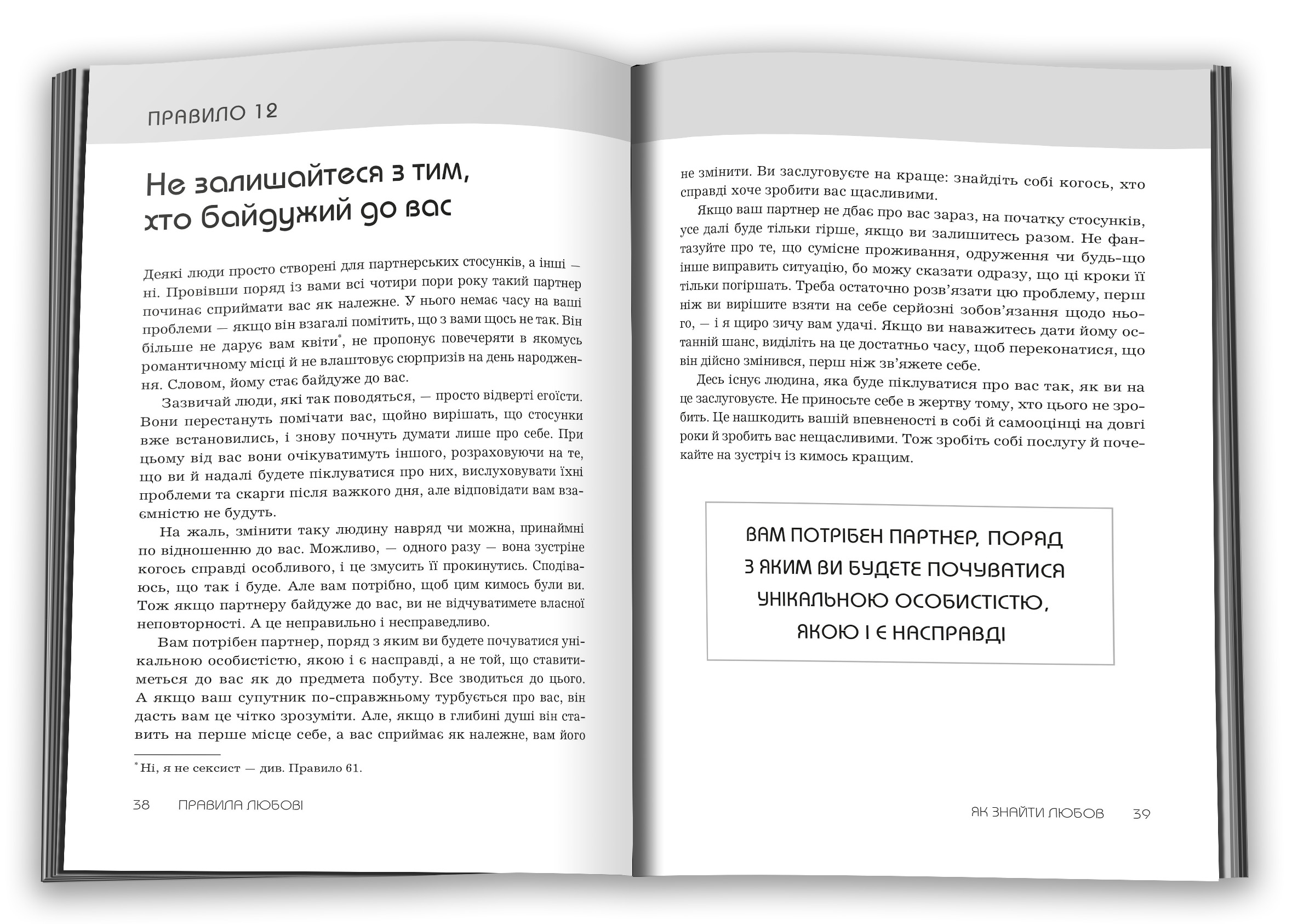 Ця книжка — чудовий порадник для тих, хто хоче більше дізнатися про любов і про те, як правильно любити. Йдеться не тільки про вашого коханого, а й про всіх, хто поряд з вами, — друзів, родину. Вона допоможе вам зрозуміти, що насправді важливо й до чого ми маємо прагнути, щоби зробити наші стосунки глибокими й міцними.