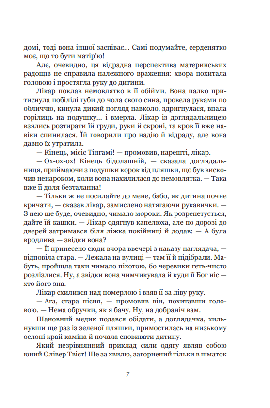 «Пригоди Олівера Твіста» — класика світової літератури для юнацтва і один із найпопулярніших творів Чарлза Дікенса. Цей роман зачаровує вже з перших сторінок, позаяк він — щось значно більше, ніж просто історія сироти, що бореться за виживання в жорстокому світі вікторіанської Англії. Це захопливий трилер про добро і зло, зворушлива драма про людяність і справедливість, а також гостра соціальна сатира, яка не втрачає актуальності й сьогодні.
