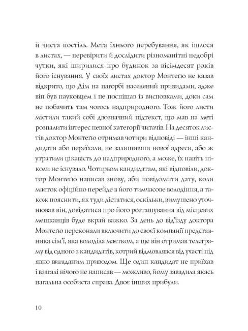 Уже багато років ніхто не наважується оселитися в похмурому маєтку на околиці Гіллсдейла. Навіть слуги, що підтримують у ньому лад, намагаються не залишатися на ніч під дахом Дому на пагорбі. Та одного дня тишу сумнозвісного будинку порушує строката компанія: дослідник паранормальних явищ доктор Монтеґю і його помічники — екзальтована Теодора, якій непогано вдається вгадувати чужі карти і чужі думки, майбутній власник маєтку Люк Сандерс і Елінор Венс, яка в дитинстві зіткнулася з полтерґейстом. Намагаючись досліди ти загадкову природу Дому на пагорбі, вони відкривають власні приховані таємниці. І з кожним днем стає зрозумілішим, що це не гості досліджують будинок, а він спостерігає за ними, обираючи собі жертву…