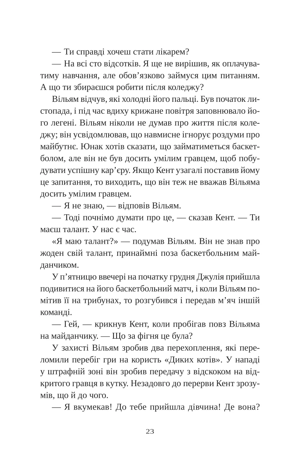 Вільям Вотерс виріс у будинку, де панувала тиша. Після трагедії батьки ледве могли дивитися на нього, не кажучи вже про те, щоб виявляти любов. Тож яким полегшенням для хлопця стала стипендія у коледжі далеко від дому! Незабаром він зустрічає Джулію Падавано — енергійну та амбітну дівчину.