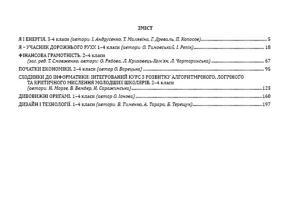Збірник містить 7 програм курсів за вибором для 1–4 класів. Усі програми рекомендовані Міністерством освіти і науки України. Розроблені авторськими колективами (учителі, методисти, науковці) з різних регіонів України. В усіх програмах враховано досвід роботи учителів та учнів початкової ланки загальноосвітніх навчальних закладів.