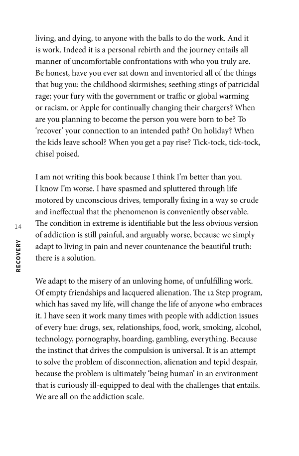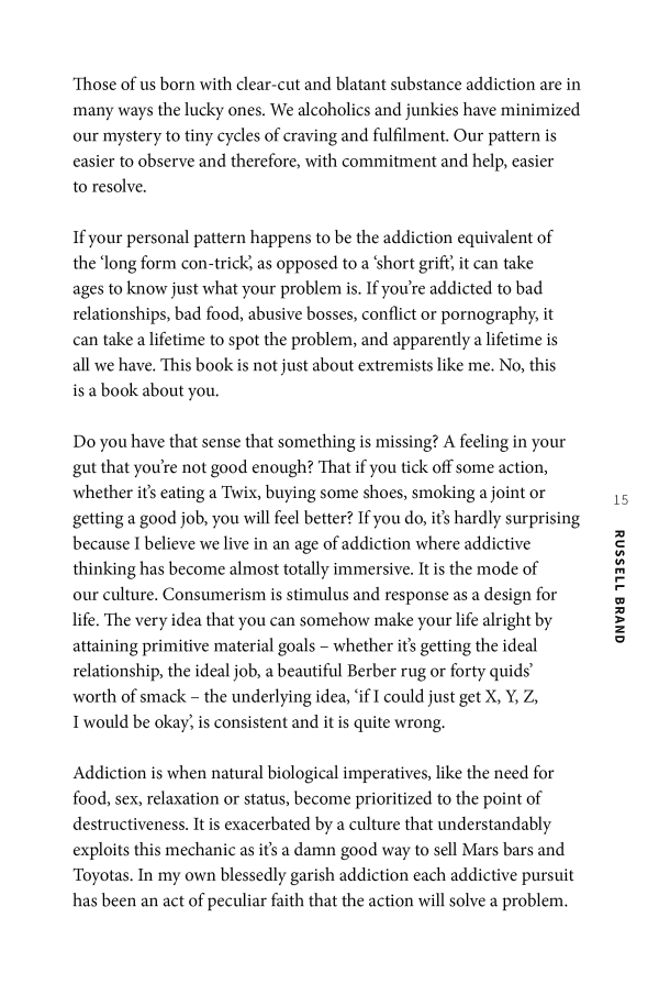 Russell has been in all the 12-step fellowships going, he's started his own men's group, he's a therapy regular and a practiced yogi - and while he's worked on this material as part of his comedy and previous best sellers, he's never before shared the tools that really took him out of it, that keep him clean and clear. Here he provides not only a recovery plan but an attempt to make sense of the ailing world.