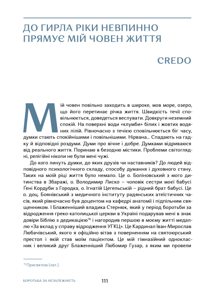 Книжка спогадів Бориса Білинського – лікаря-онкохірурга, професора, онука видатного історика Мирона Кордуби, шкільного друга Патріарха Любомира Гузара – це історія України ХХ століття, висвітлена через призму життя автора. Водночас це розмова з надзвичайно цікавим і глибоким співбесідником. Спогади складаються з частин, присвячених різним аспектам життя: родині, медицині, альпінізму, поглядам. Книгу проілюстровано фотографіями з приватного архіву Бориса Білинського, чимало з них опубліковано вперше.