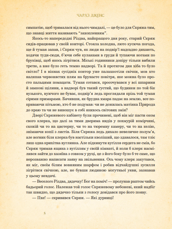 Повість відомого англійського письменника Чарлза Діккенса розповідає нам про жалюгідного скнару Ебенезера Скряжа. Однієї ночі до чоловіка приходять духи, котрі показують йому події минулого, теперішнього і майбутнього. Чи змінить Скряж своє життя, чи по-любить він Різдво, чи радітиме святу разом із іншими?