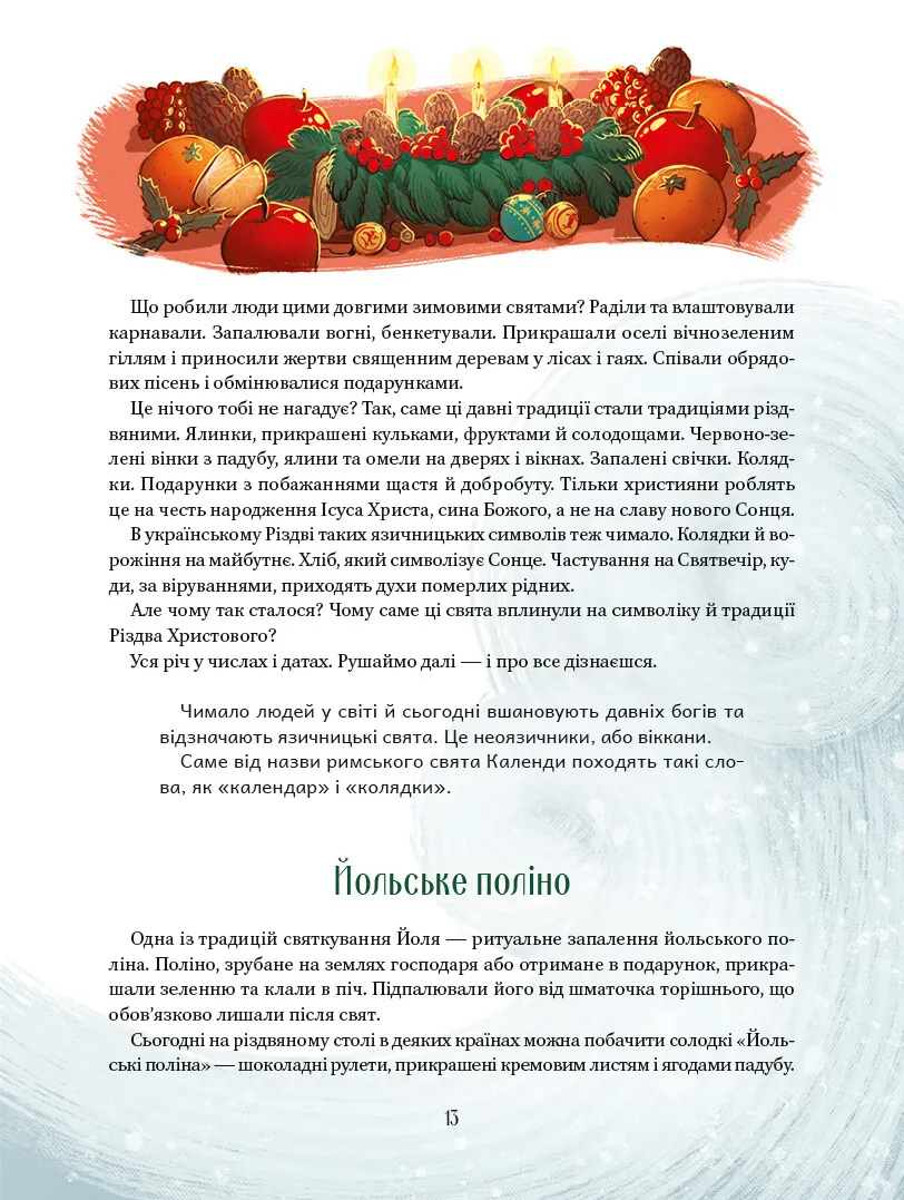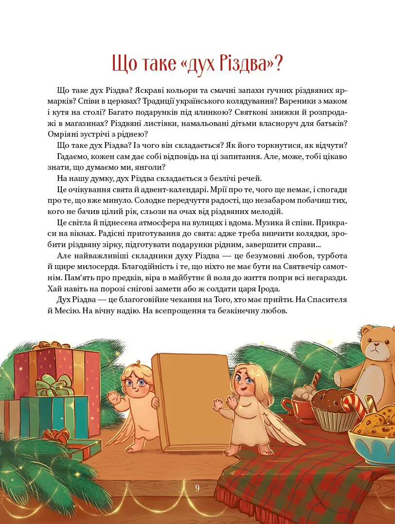 Ми розкажемо про народження Христа, життя святого Миколая, символи українського Різдва, святкові традиції українців та мешканців інших країн. У цій магічній книжці на тебе чекають дивовижні відкриття й таємниці, а також веселі віршики, колядки та захопливі ігри.
