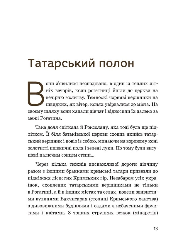 Як юній дівчині з маленького українського села вдалося стати найвпливовішою та найбагатшою жінкою за всю історію Османською імперії? Дізнайся історію неймовірної Роксолани, яка змогла протистояти скрутним обставинам та стати дружиною могутнього імператора. Приклад Роксолани доводить, що неважливо які труднощі випали на твою долю, головне бути унікальною, сильною особистістю, тоді ти обов’язково знайдеш сили, щоб протистояти перешкодам.