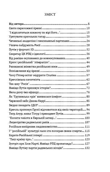 У цьому виданні, що є продовженням книги “Антирадянські історії”, професор Державного університету Ілії (Грузія), публіцист Олєґ Панфілов продовжує спроби пояснити сучасний феномен – появу й існування на одній сьомій частині земної поверхні території під назвою “Росія”, в якій брехня є державною політикою, а вигадану історію видають як реальну.